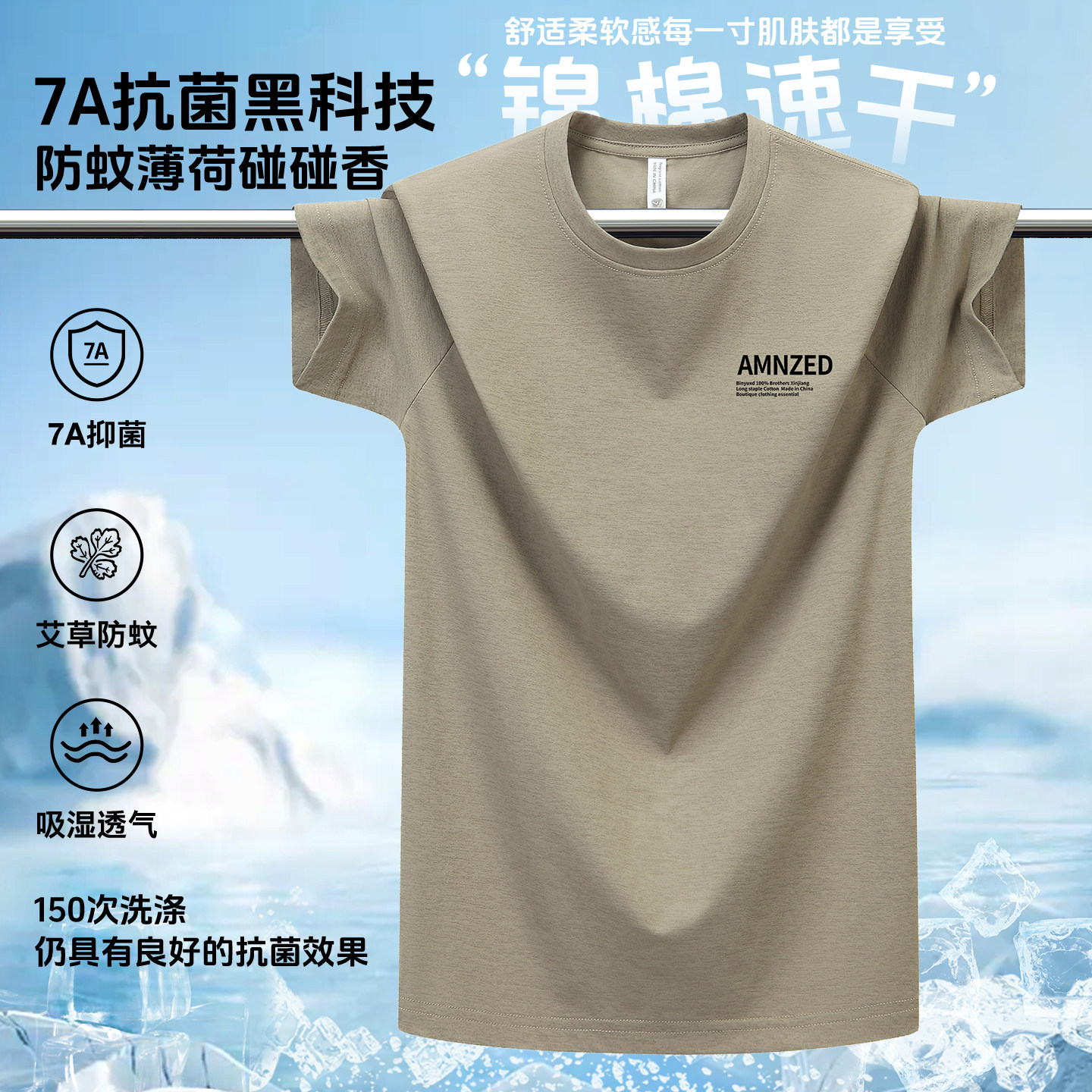 短袖 7A抗菌防蚊薄荷宽松运动休闲上衣透气男士 半袖 T恤男速干夏季