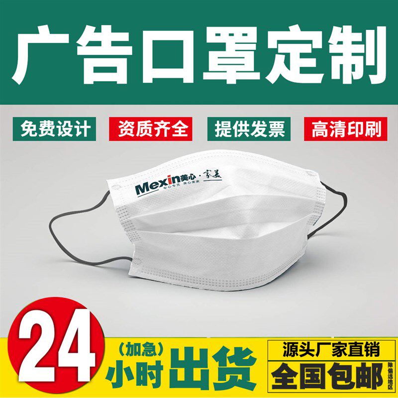 直销口罩定制LOGO一次性熔喷布印刷儿童广告图案独立包装 订做个性