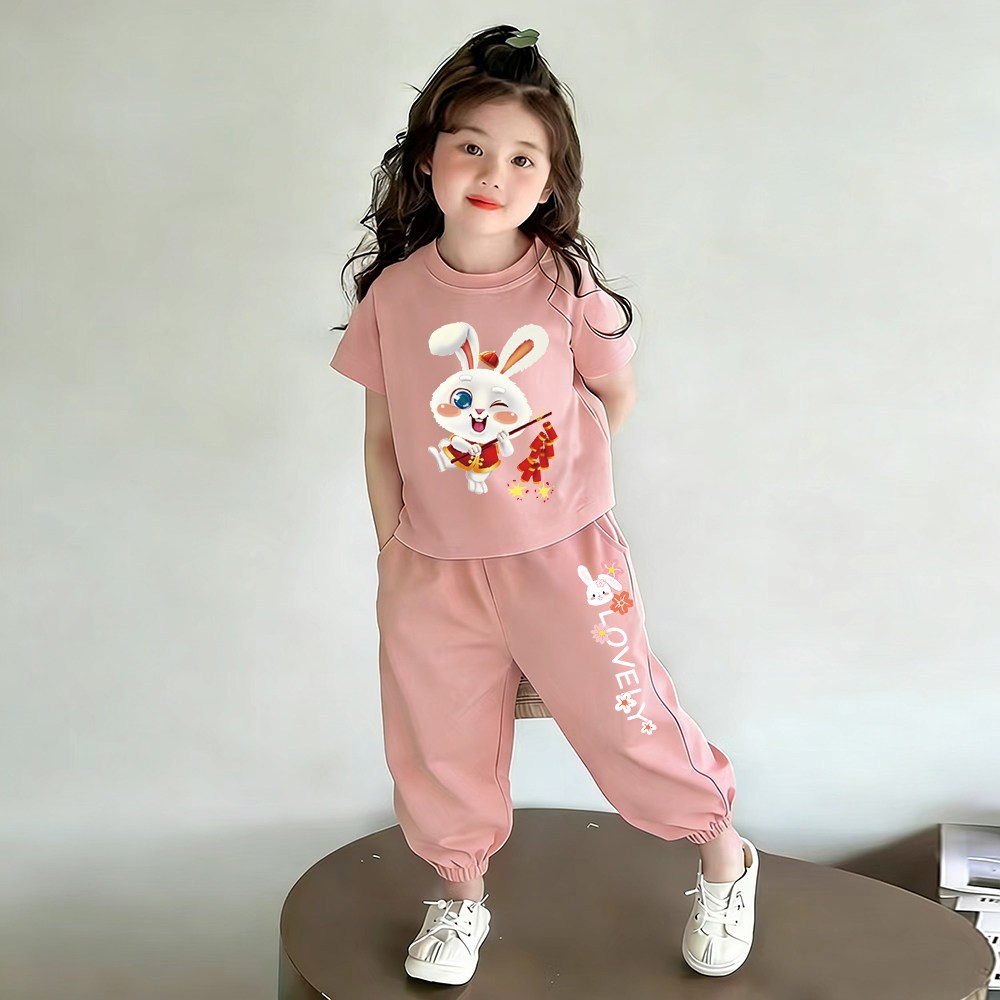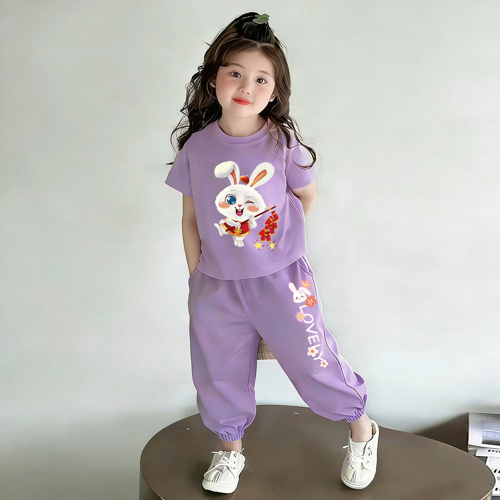 夏日新款 女童纯棉夏装 套装 薄款 两件套儿童衣服 洋气时髦女宝宝短袖由