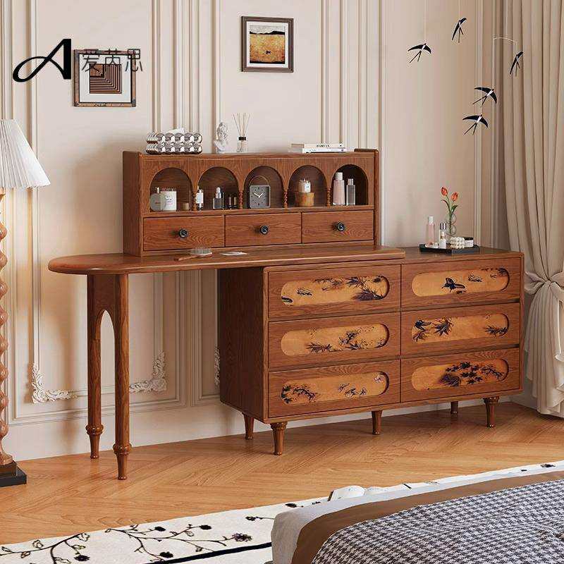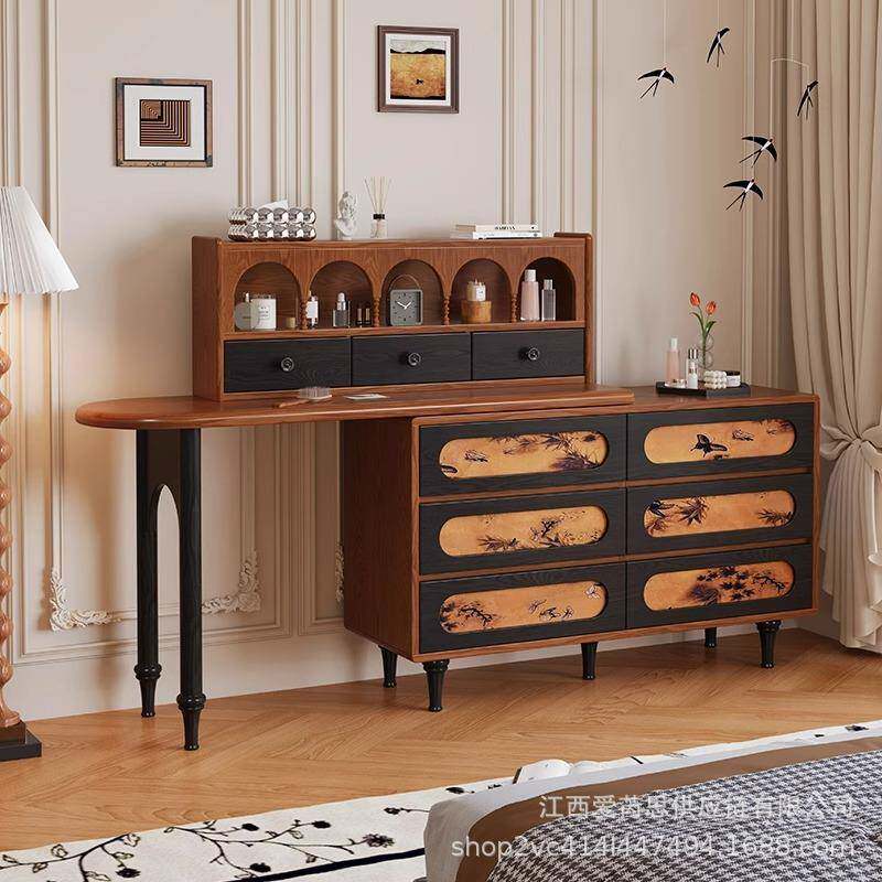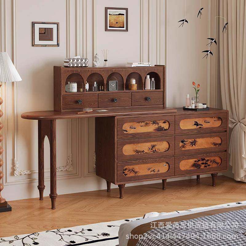 为您提供商品法式 中古风梳妆台实木小户型化妆桌子卧室床尾斗柜妆台一体超薄款的详细介绍,