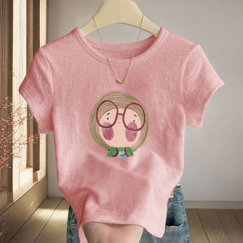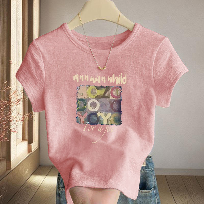 竹节棉短款 新款 休闲T恤女设计感圆领上衣遮肉短袖 小个子 2026夏季