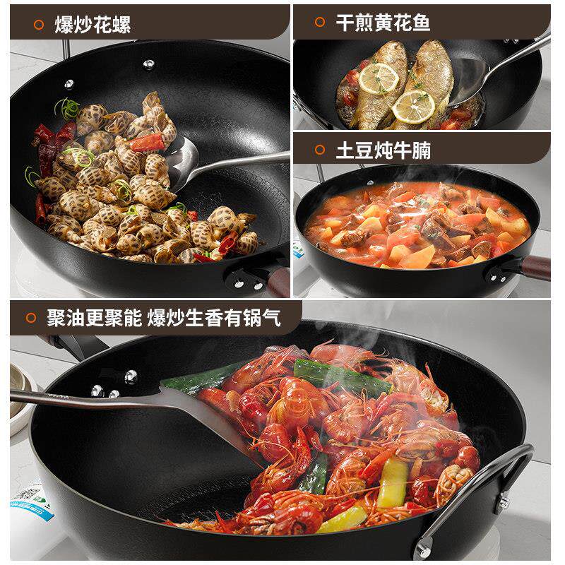 九阳铁锅无涂层炒锅家用炒菜锅不易粘锅电磁炉专用燃气灶旗舰店炊
