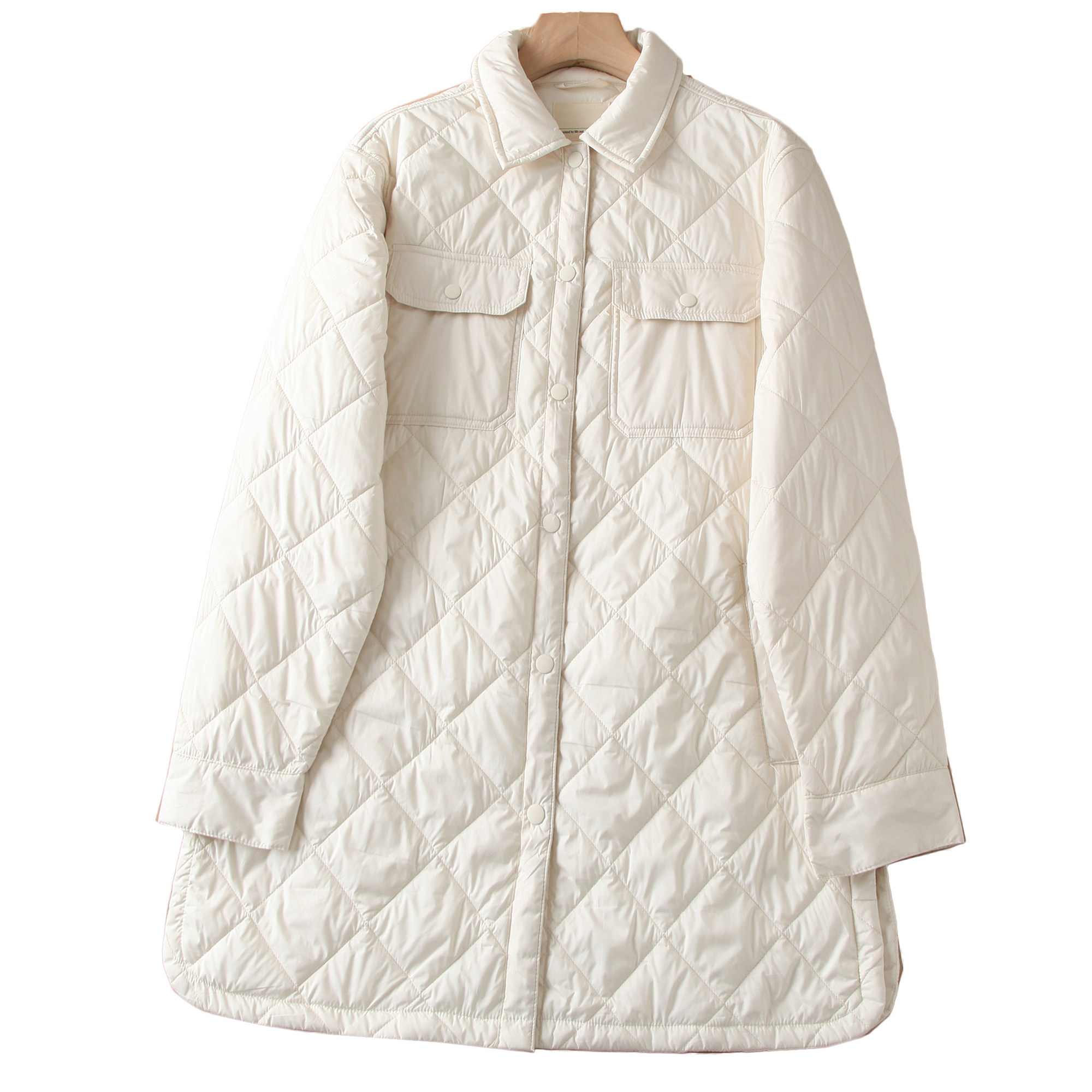 棉衣薄款 澳洲单 棉服外套女 中长款 式 有大码 秋冬菱格绗缝夹棉衬衫由