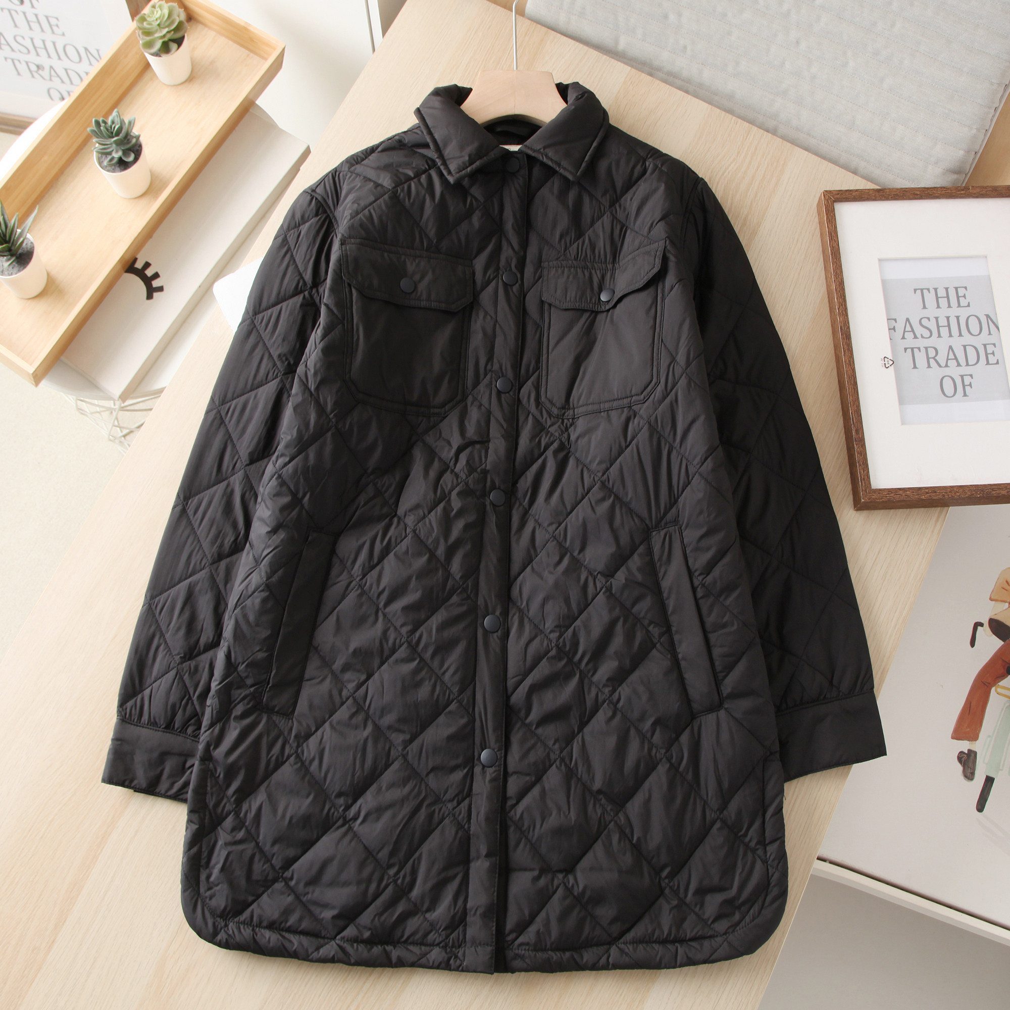 棉衣薄款 澳洲单 棉服外套女 中长款 式 有大码 秋冬菱格绗缝夹棉衬衫