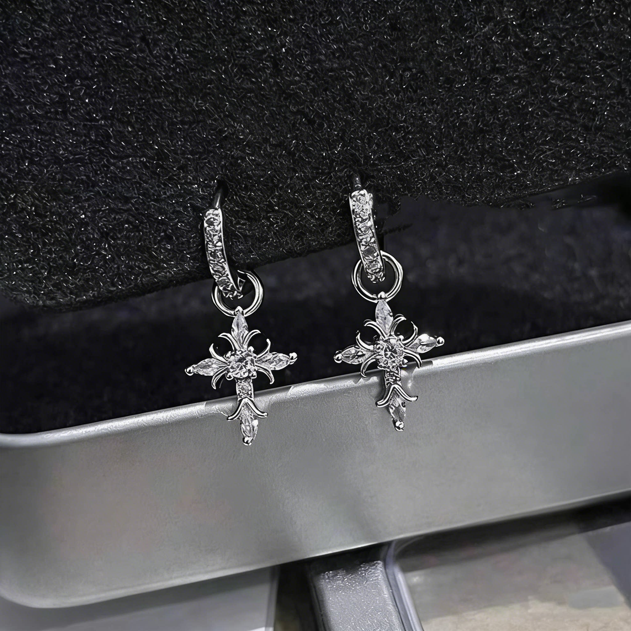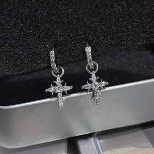 F136钛合金爆闪十字架吊坠耳扣复古冷淡风潮流耳饰耳圈生日礼物