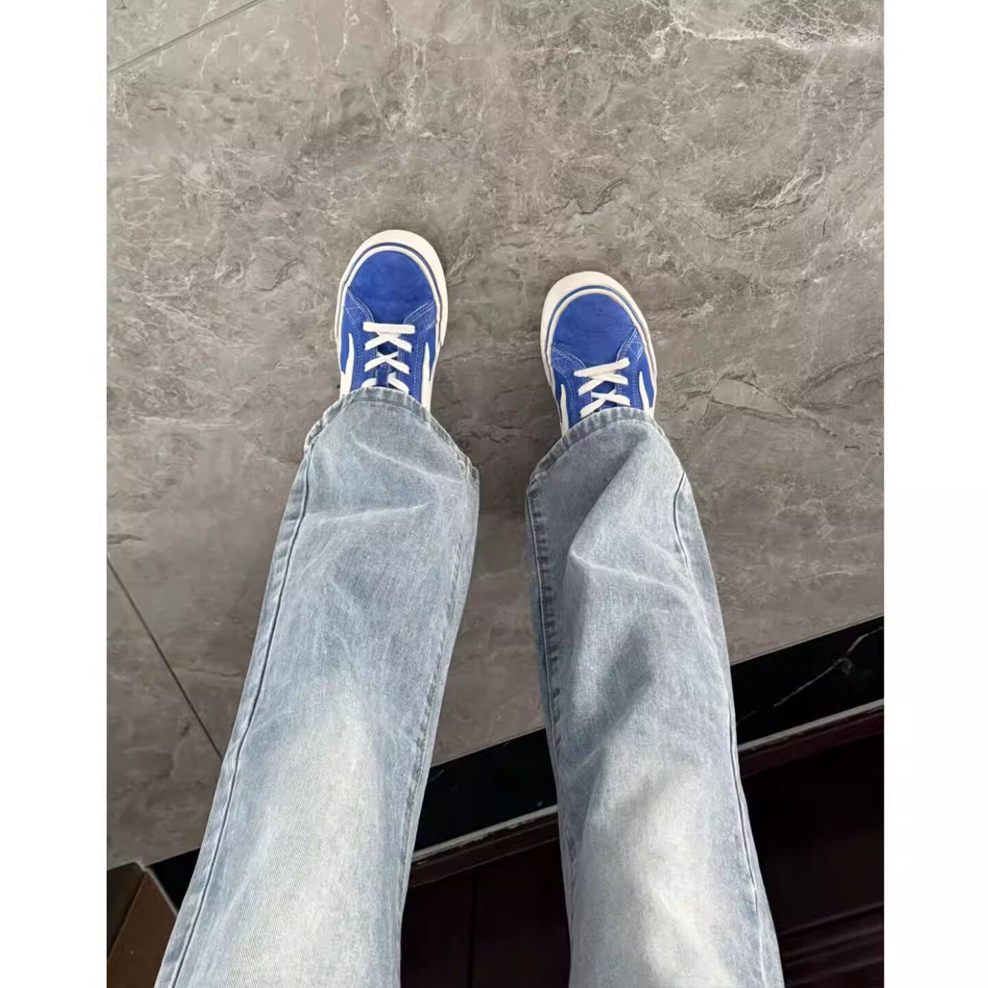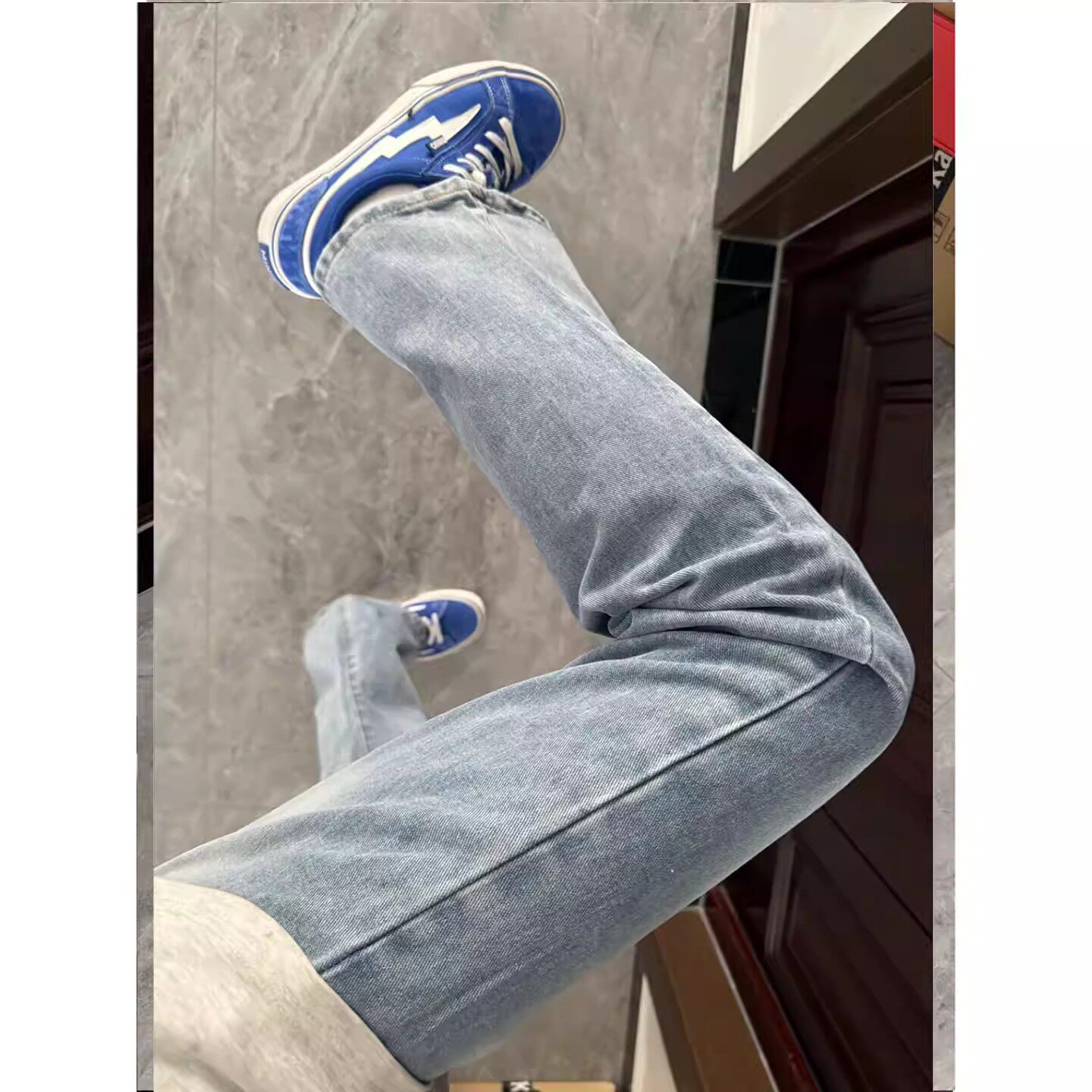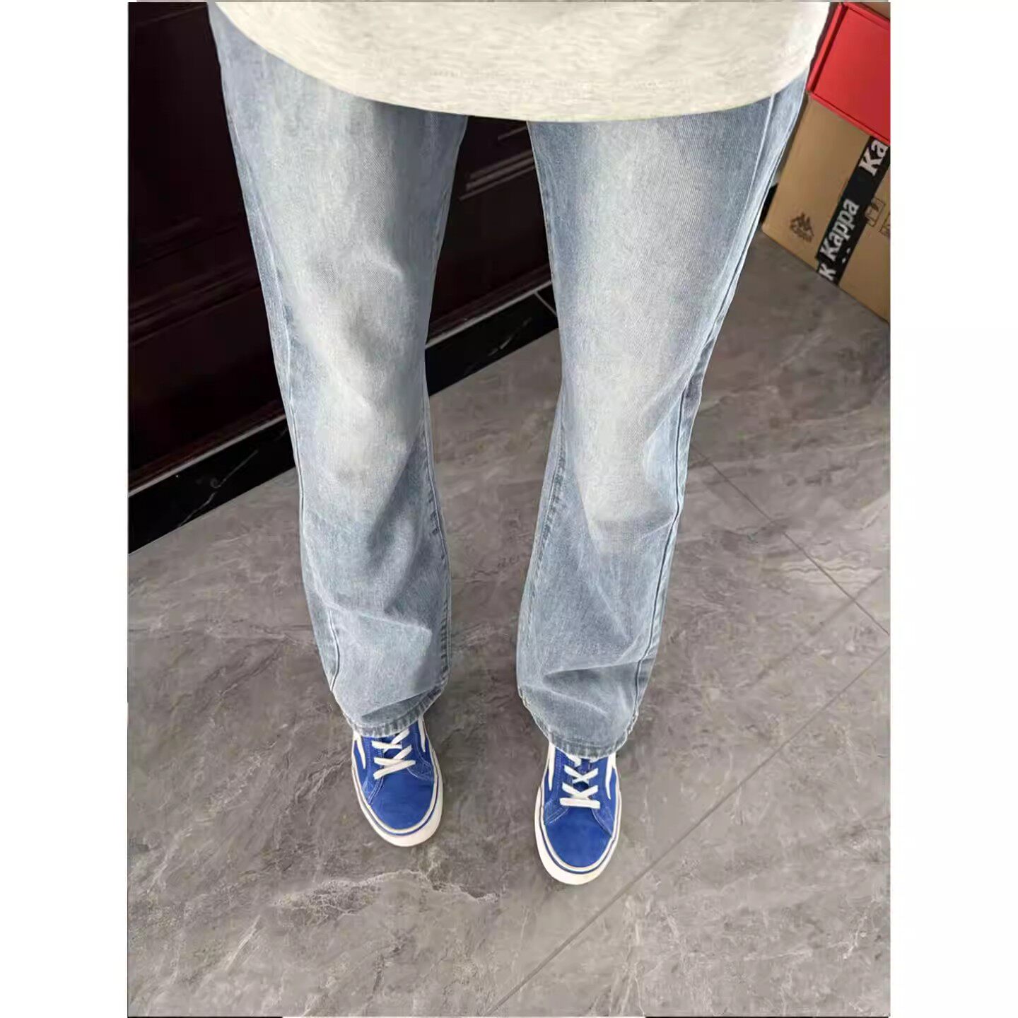 子显瘦修身 cleanfit浅蓝色水洗牛仔裤 男美式 高街vibe裤 直筒微喇裤