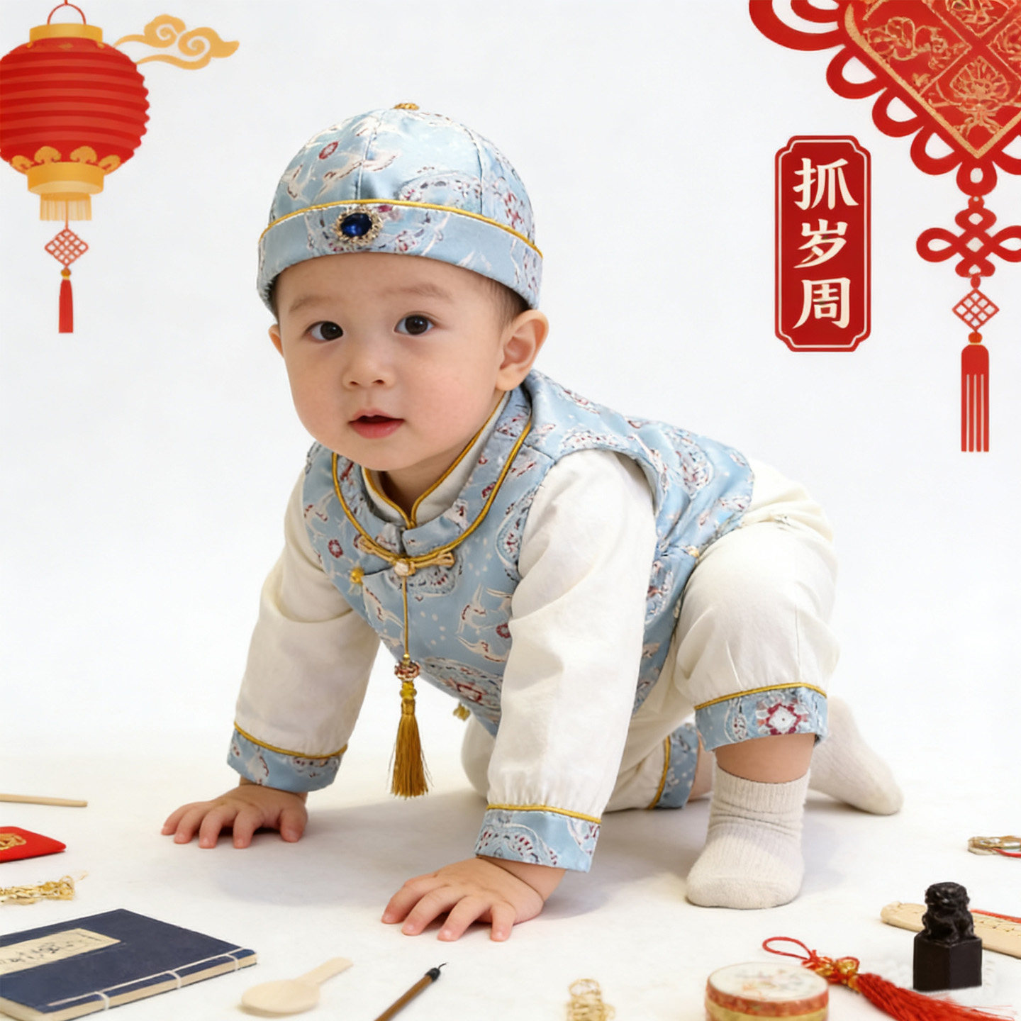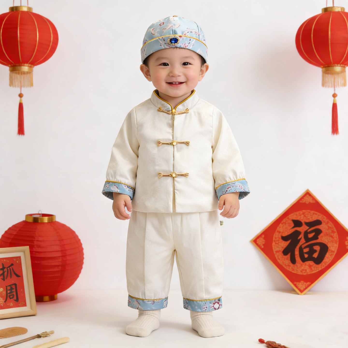 儿童唐装 男宝生日百天宴抓周衣服婴儿新中式 周岁宝宝礼服2026新款