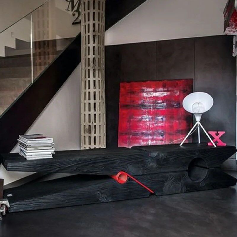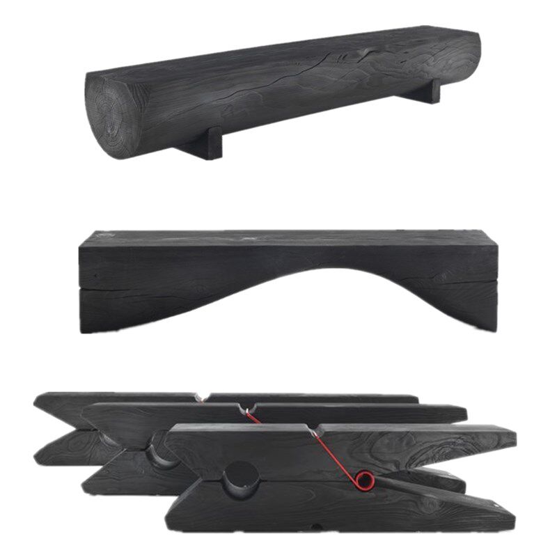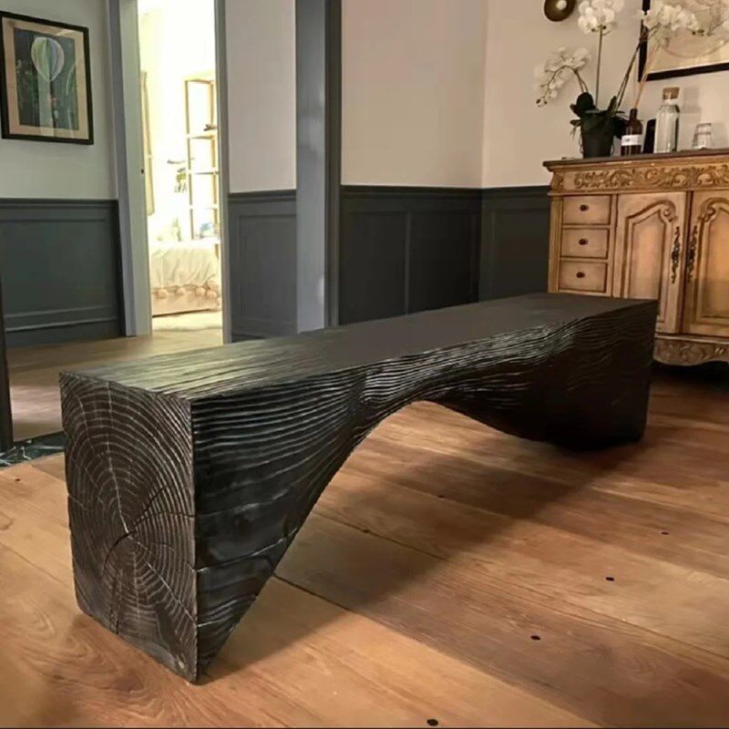 木墩长条凳子 北欧侘寂风实木碳化民宿酒店电视柜家用入户休息换鞋