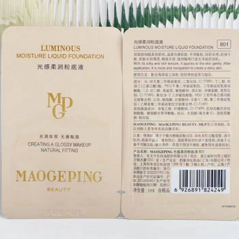 为您提供商品毛戈平光感柔润水奶油粉底液小样试用装 试色 干皮遮瑕持妆801正品的详细介绍,