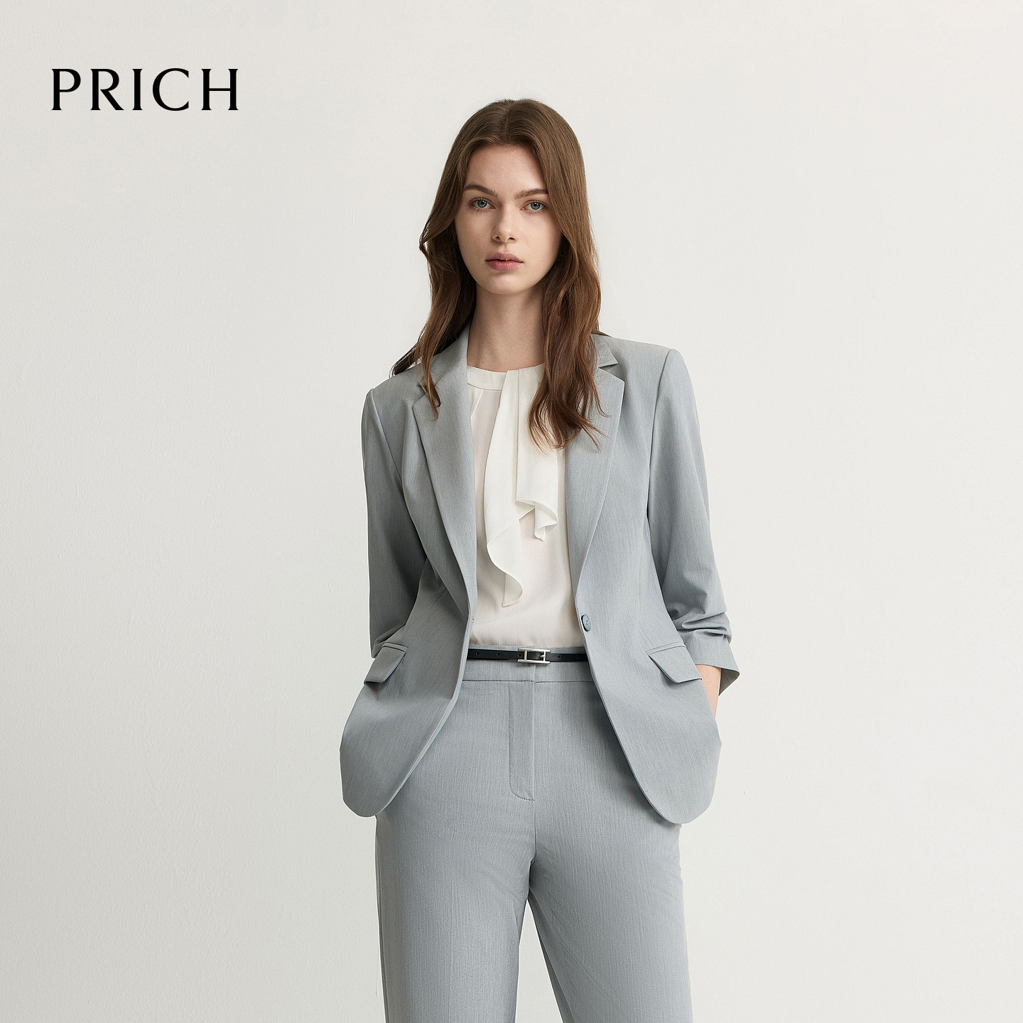 2026夏新款 收腰通勤外套女 西装 PRICH简约堆褶七分袖 零染 凉感