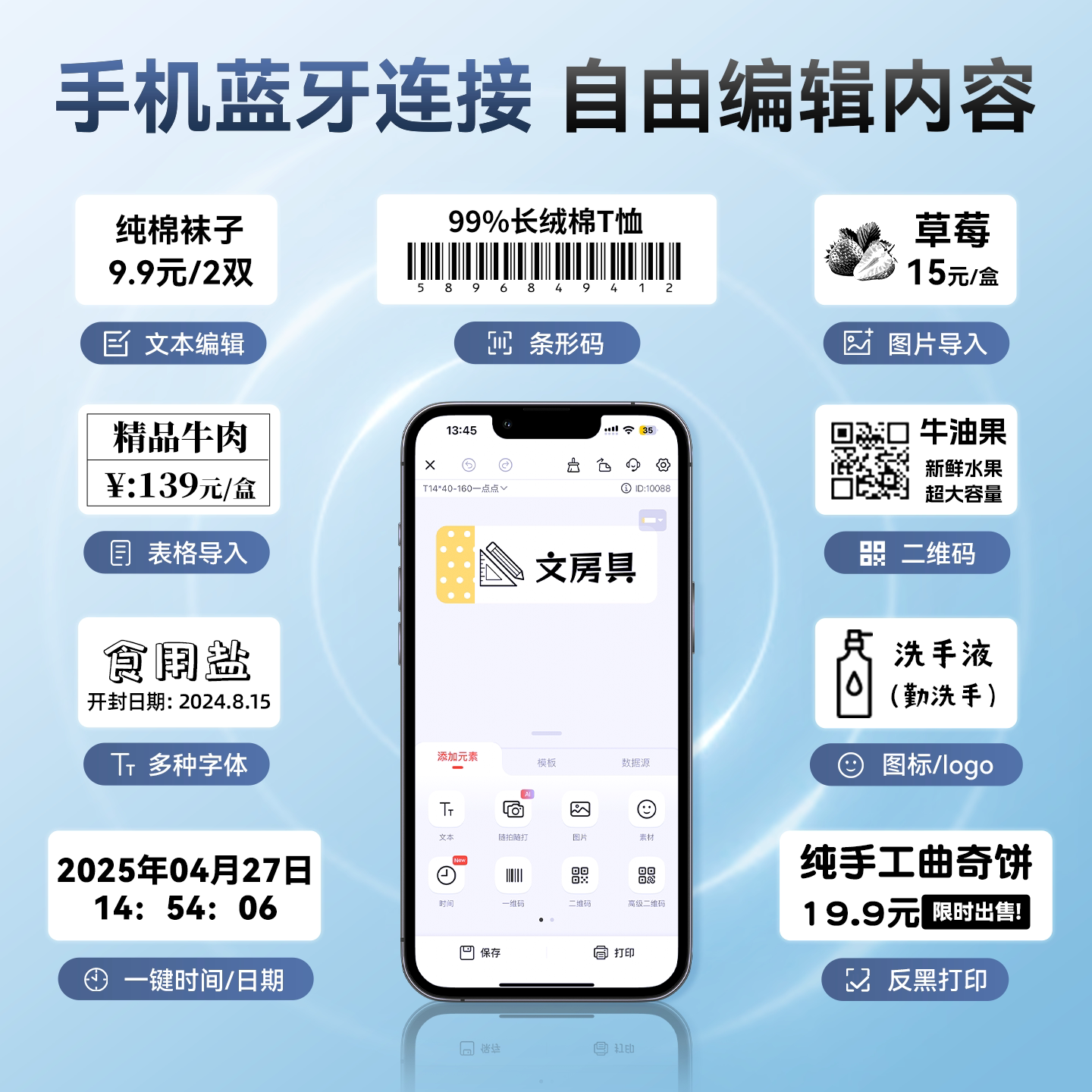 硕方T50Pro食品标签打印机商用价格小型迷你手持服装 器标签机 吊牌手机商品家用透明名字贴不干胶条形热敏打码