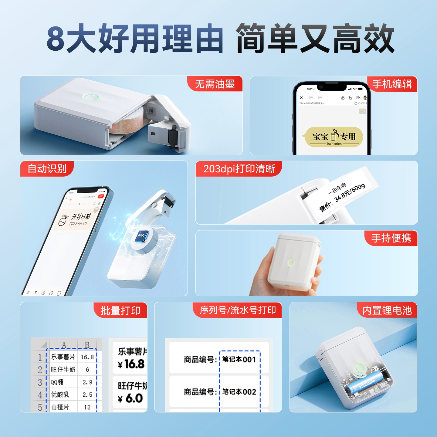 机B18 精臣N1热转印标签打印机便携家用办公开关线缆小型碳带不干胶贴纸便签手持彩色衣服名字姓名贴收纳打码