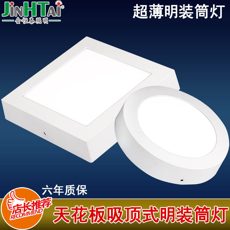 筒灯超薄吸顶灯房顶射灯方形圆形6W12W18W22CM300mm免开孔 LED明装