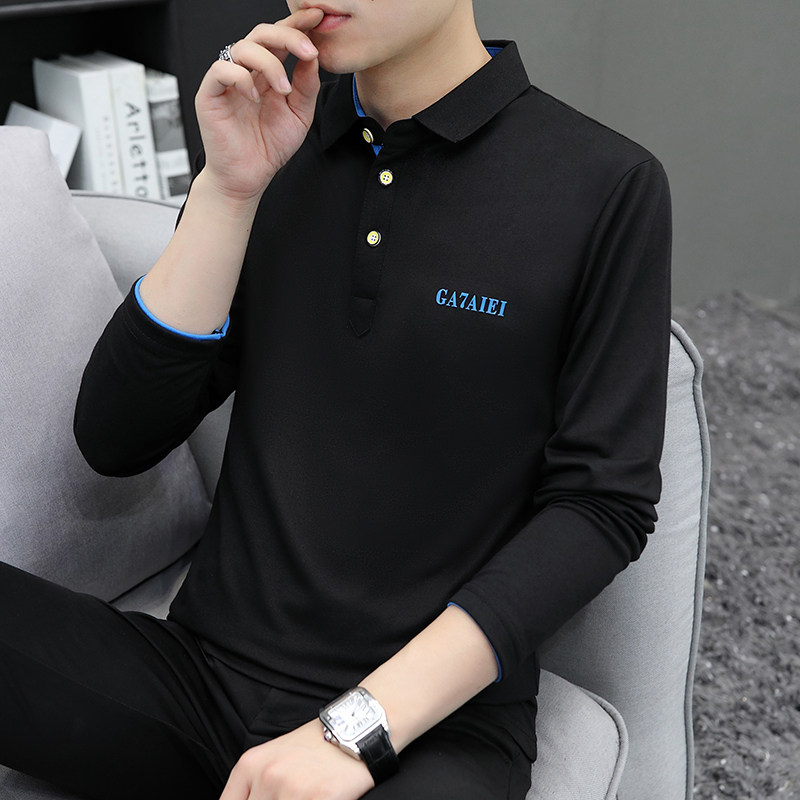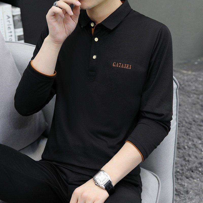 春秋有领子T恤男长袖 翻领休闲Polo衫 男士 带领体恤宽松上衣服 大码