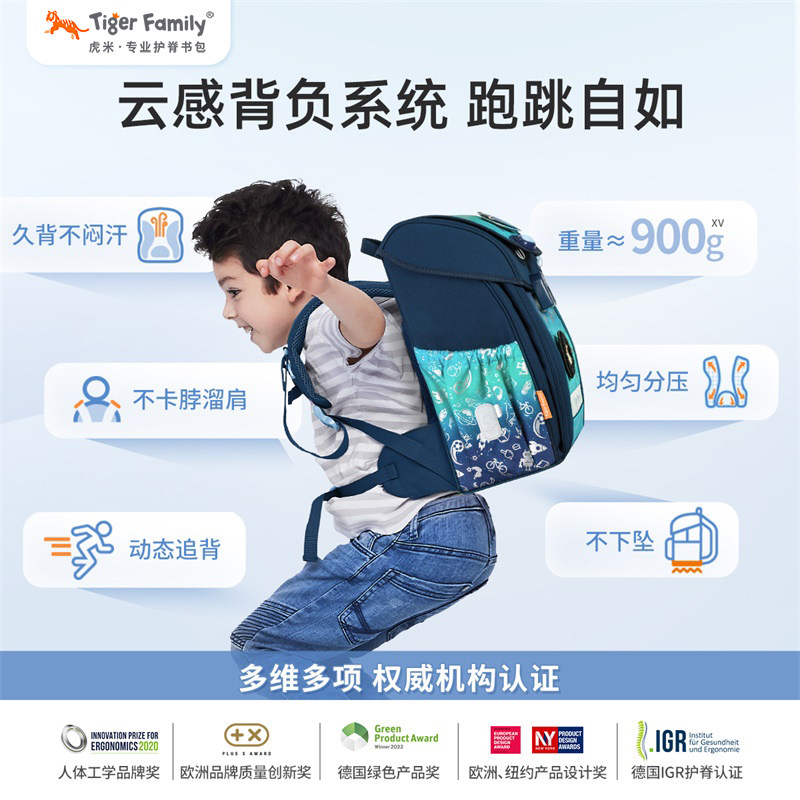 福利款 tigerfamily虎米书包1 9年级小学生初高护脊双肩包由