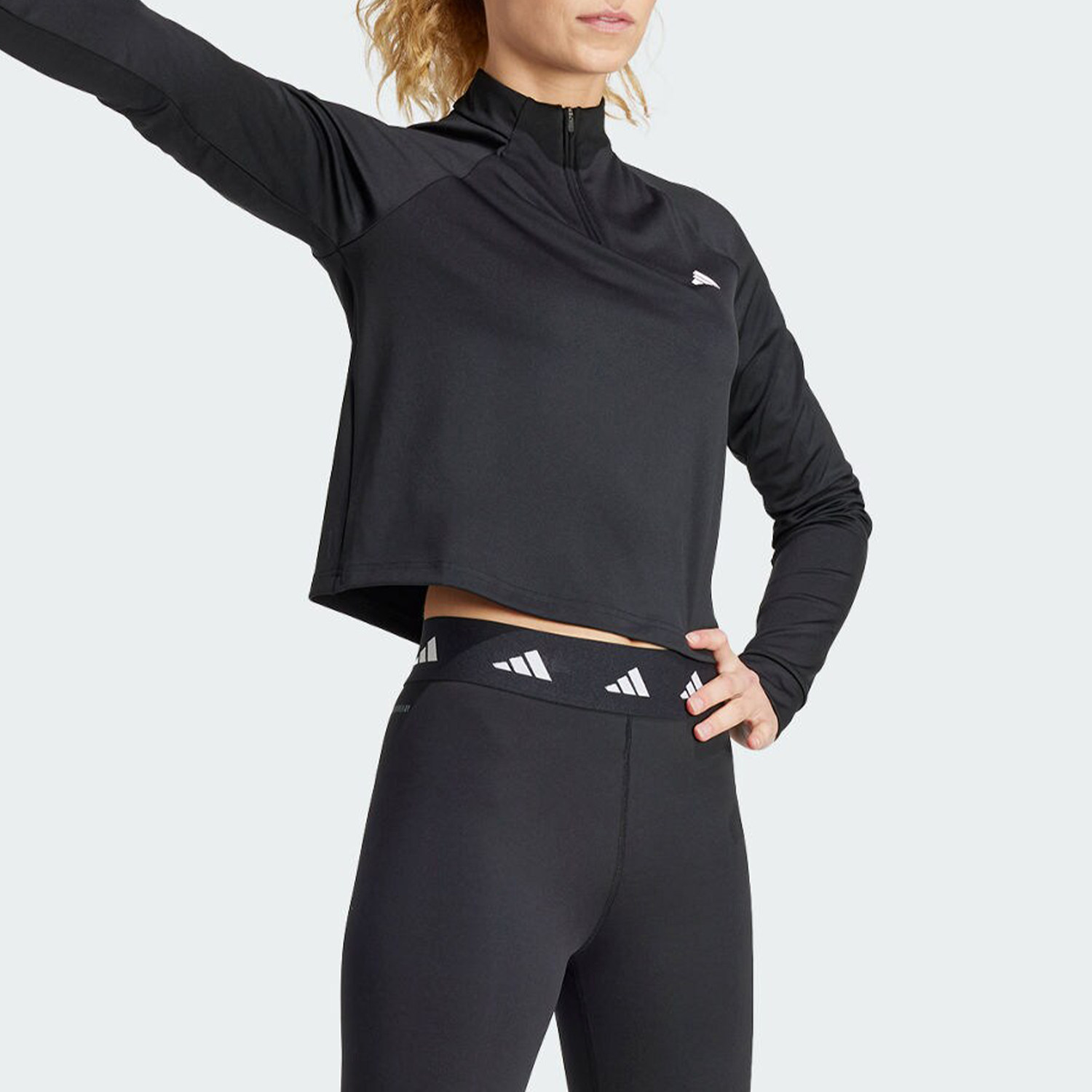 Adidas 新款 女士运动健身半拉链长袖 T恤IS4028 阿迪达斯官方正品由