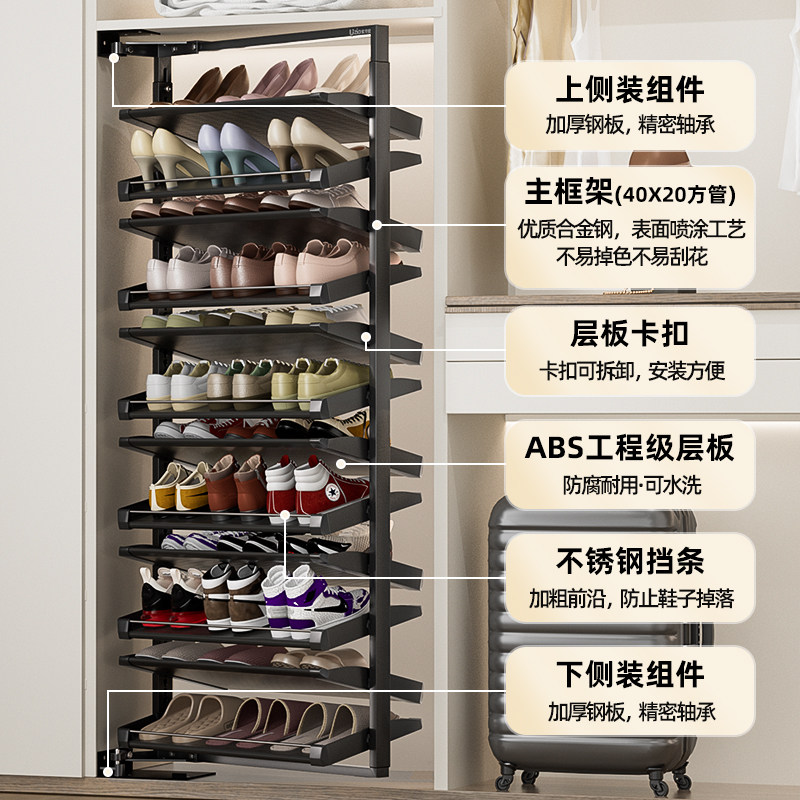 为您提供商品柜内置90度侧装 五金家用不锈钢翻转大容量收纳神器 架超薄鞋 旋转鞋的详细介绍,
