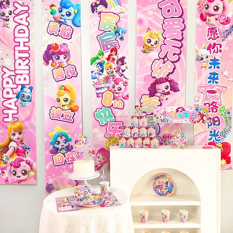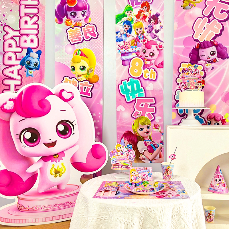 奇妙萌可卡通派对装 女孩周岁宴餐具水杯儿童生日帽爱心公主 饰套装
