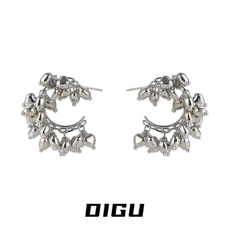 小众设计感耳环气质百搭耳饰 DIGU甜酷风金属爱心流苏C形耳圈个性