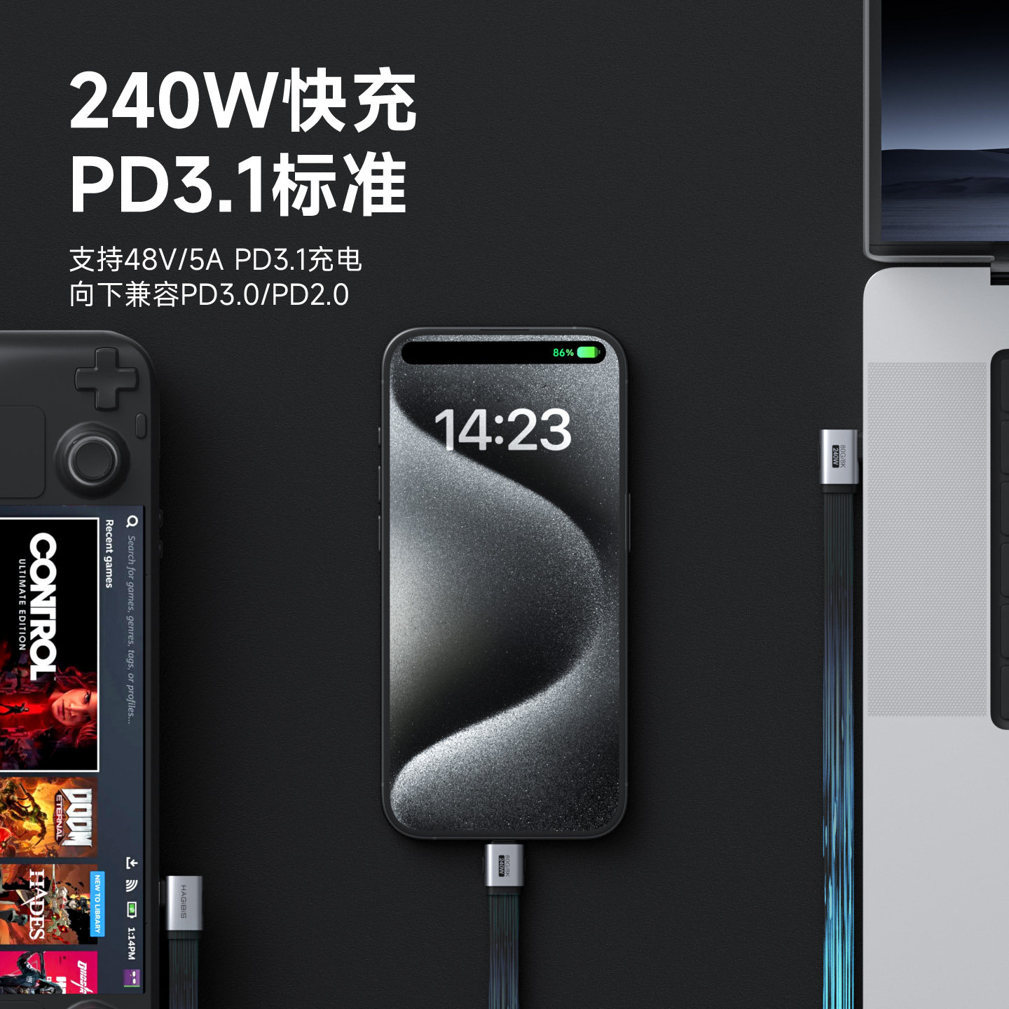 Pura80充电宝充电快充240W80Gbs 海备思typec弯头数据线ctoc雷电5USB4短线全功能侧弯移动硬盘适用iPhone17