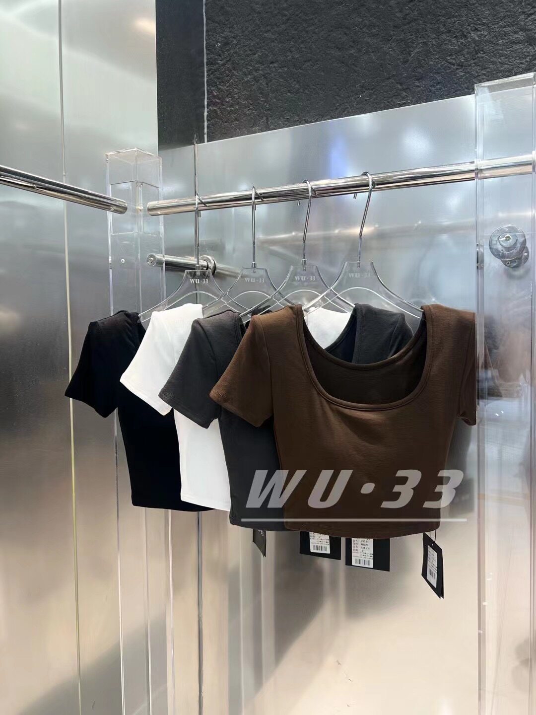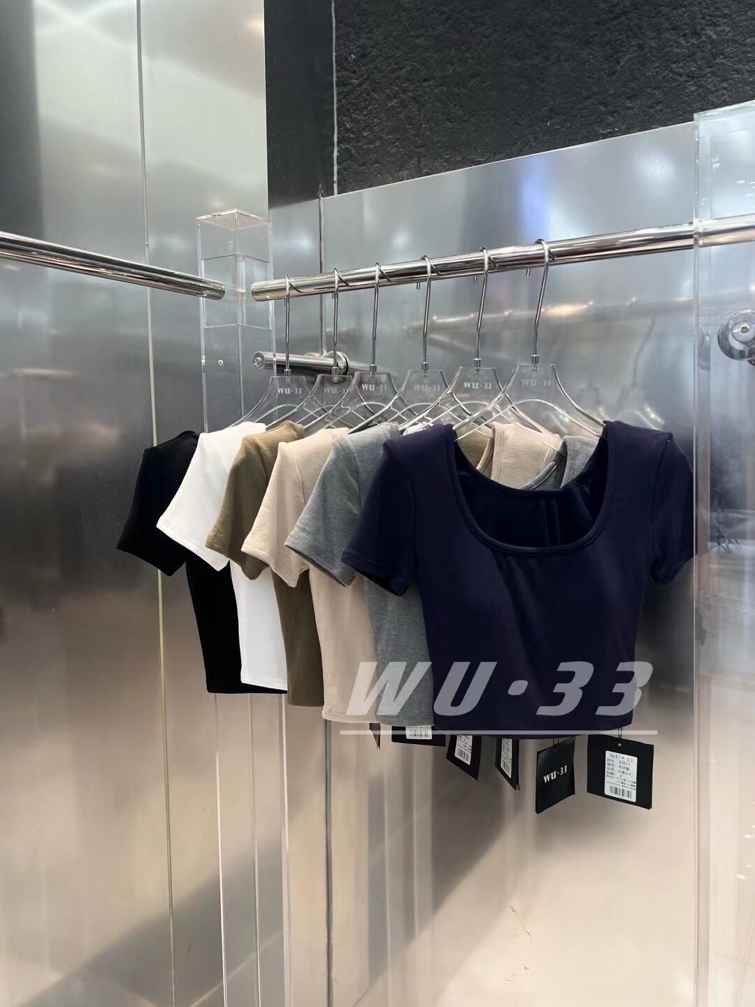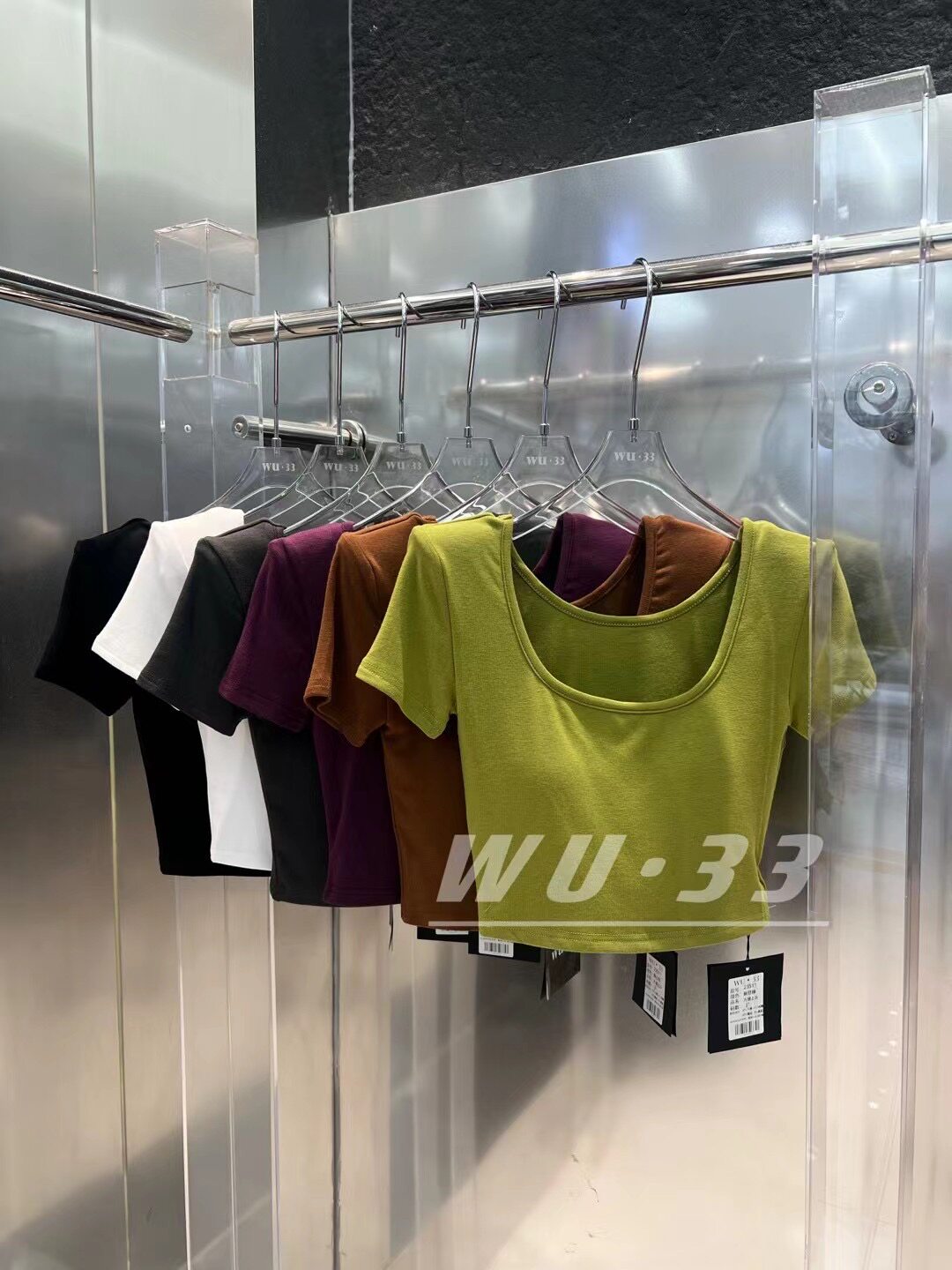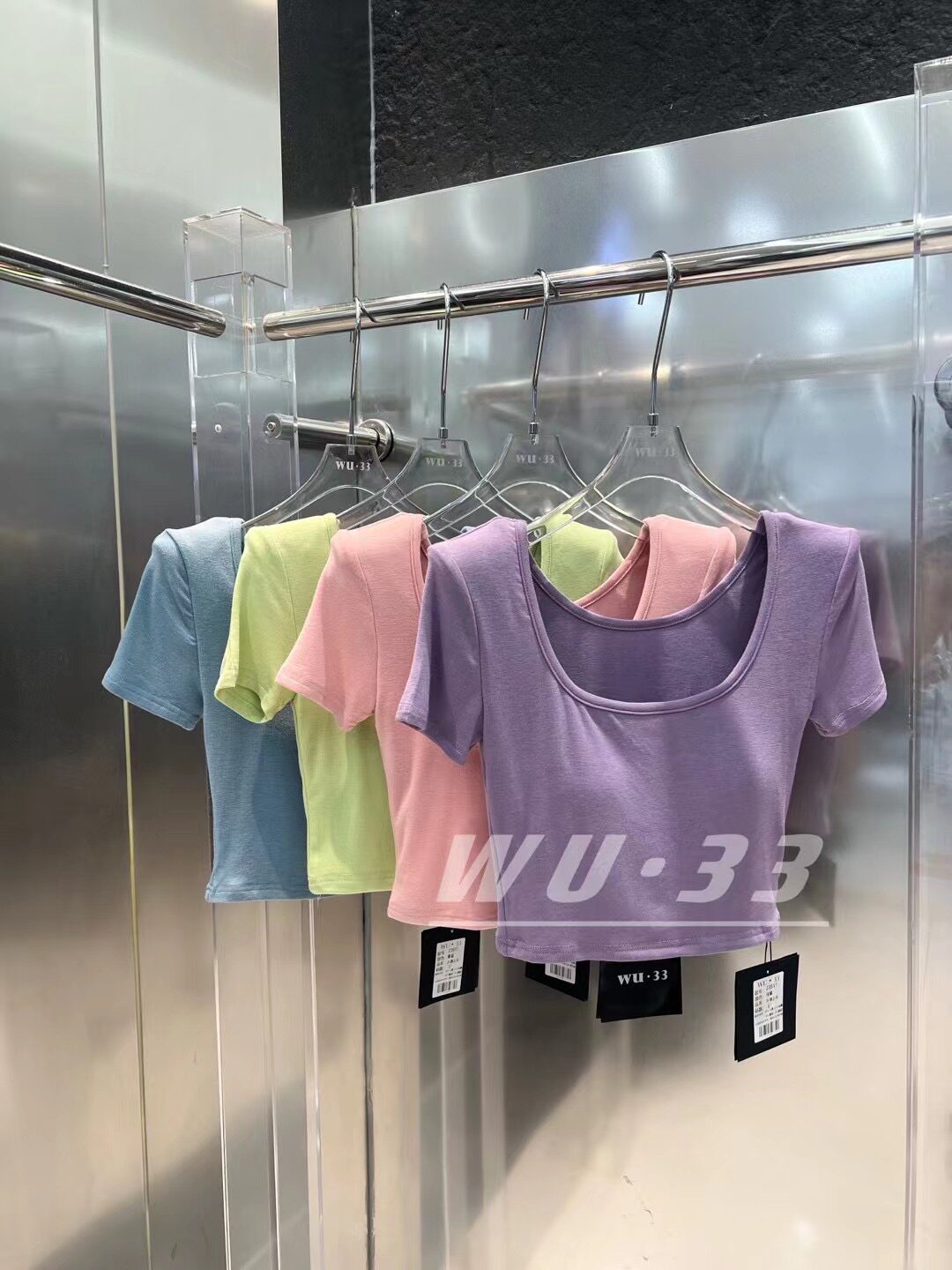 显瘦糖果色u领短袖 自带胸垫wu.33打底衫 T恤 修身 韩版 2024夏季 新款