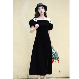 名媛气质丝绒短袖 连衣裙百搭显瘦女 复古小礼服裙法式 JUJU早秋新款