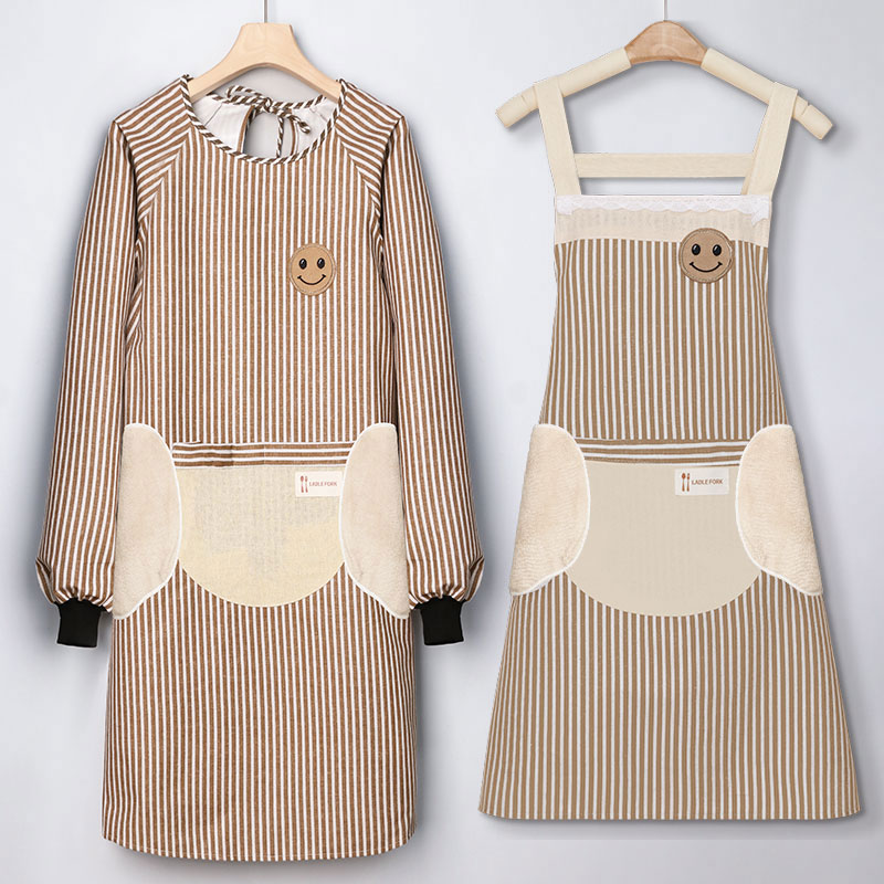家用厨房防水防油围裙餐饮专用成人工作服长袖 罩衣女做饭围腰男士