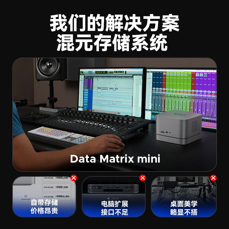 奥睿科MiniDataMatrix存储系统适用于mac m4扩容扩展底座studio display转换器桌面拓展坞兼容雷电3 mini由