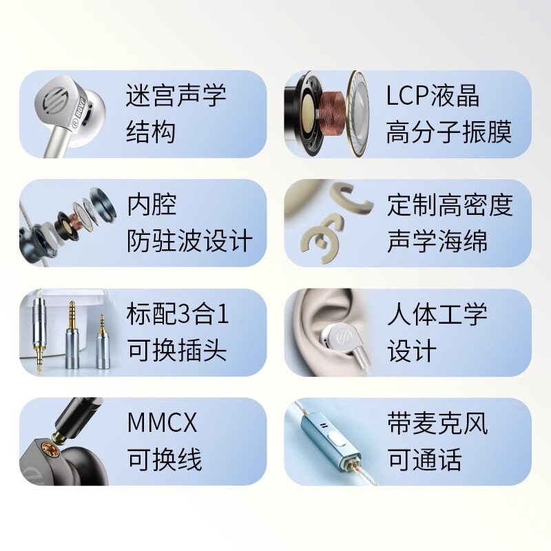 水月雨LAN兰2 有线HIFI耳机 玻璃球顶振膜高保真游戏可换线入耳式