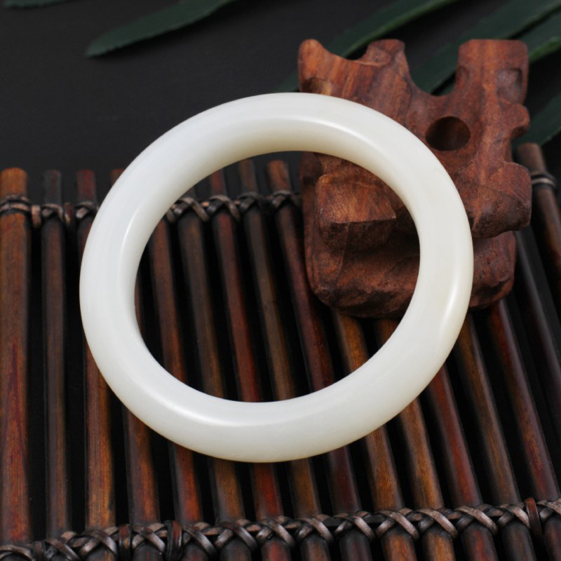 新疆和田博物馆和田玉羊脂玉手镯圆镯带证书送女生妈妈新年礼物由