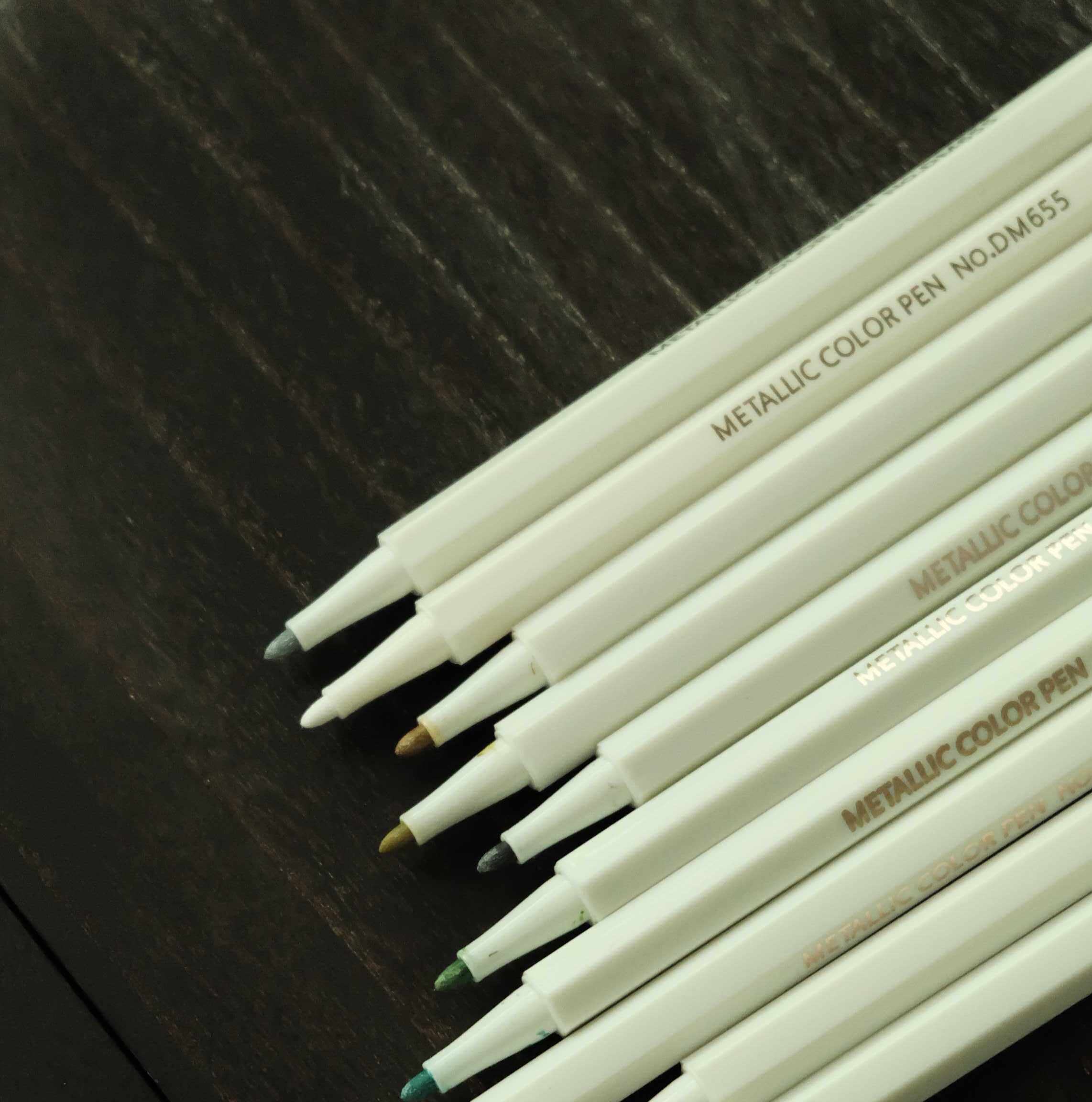 油性丙烯硬头彩色手绘涂鸦画DIY相册黑卡 10色金属笔水彩笔套装由
