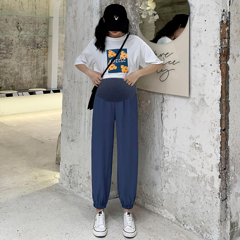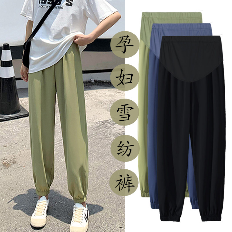 冰丝雪纺宽松休闲九分裤 孕妇夏季 新款 薄款 潮妈 运动灯笼束脚托腹裤