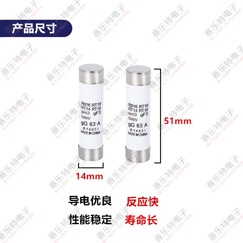 为您提供商品R016熔芯14X51 32A40A50A63A500V陶瓷保险丝管 RT18 熔断器芯RT14的详细介绍,