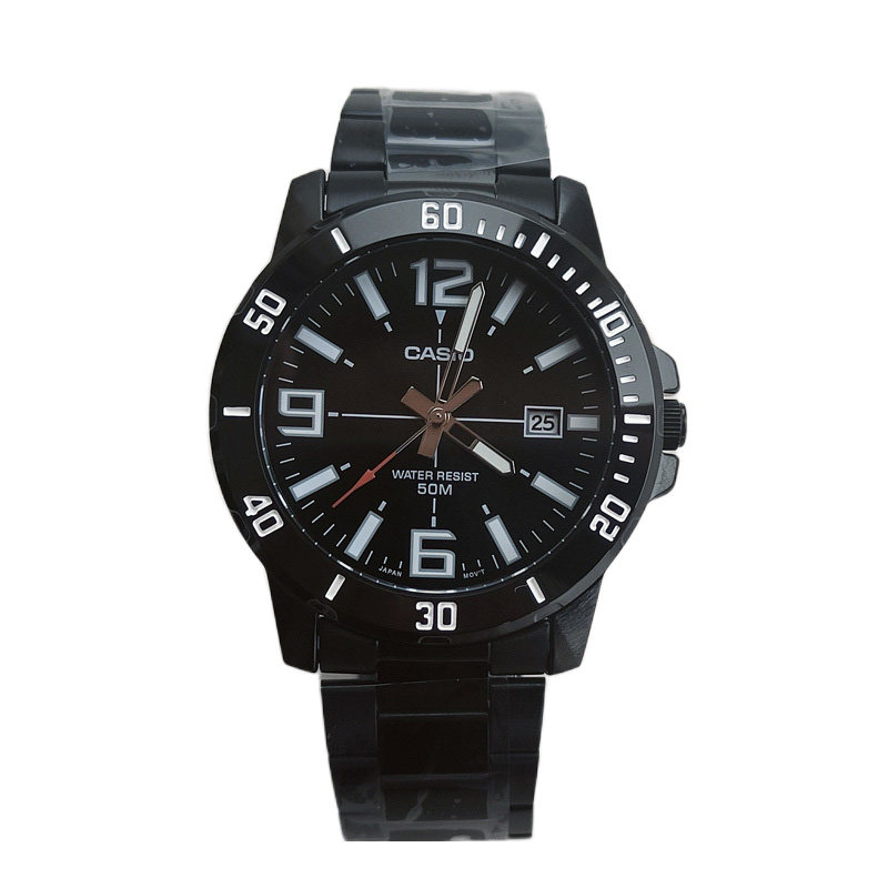 卡西欧手表CASIO VD01B 黑色钢带防水商务夜光水鬼石英表 MTP