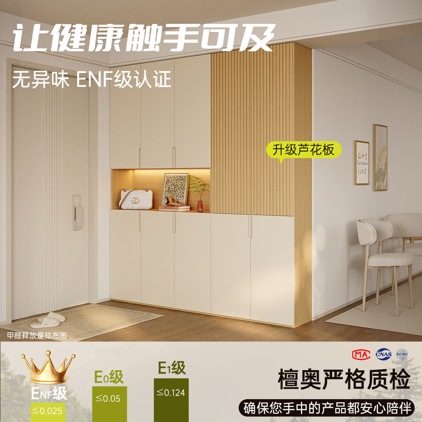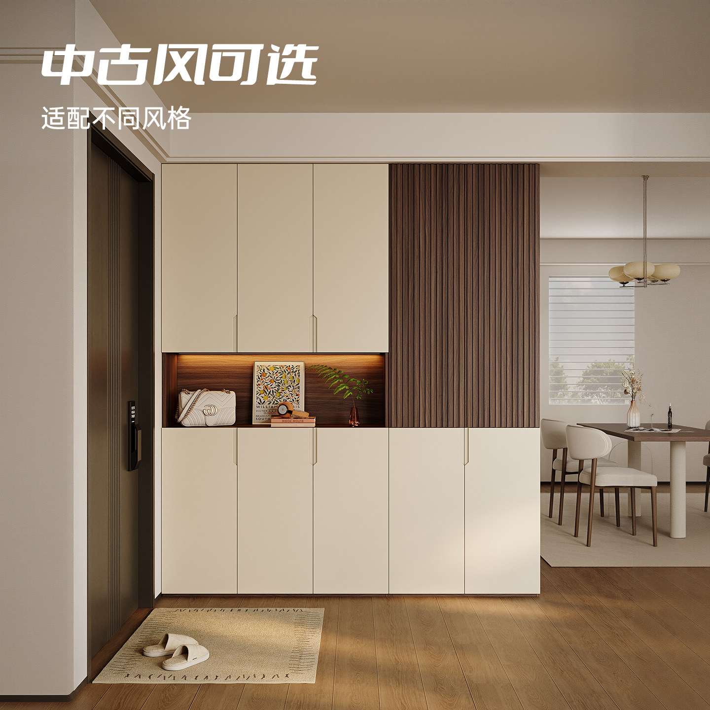 日式 柜靠墙一体隔断边柜储物柜屏风定制 家用门口原木玄关柜客厅鞋由
