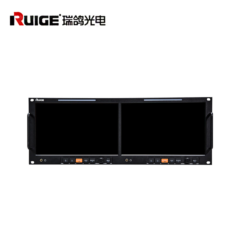 4U带测光双连屏DHMI SDI输入输出监看轻薄 2双联专业级机柜型监视器10.1寸箱载 RUIGE瑞鸽铠甲三号TL1010HD由