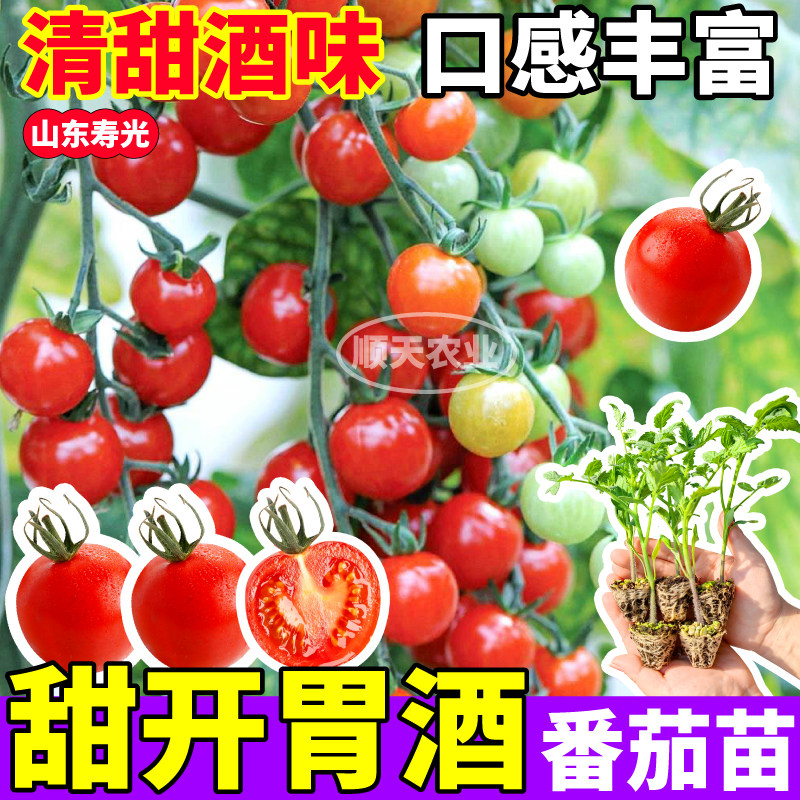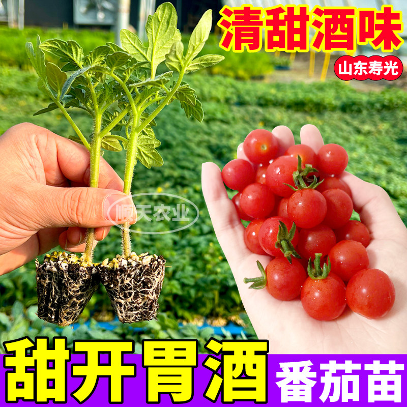 寿光甜开胃酒番茄苗秧高产串收带土球正版 阳台盆栽 圣女果种子四季由