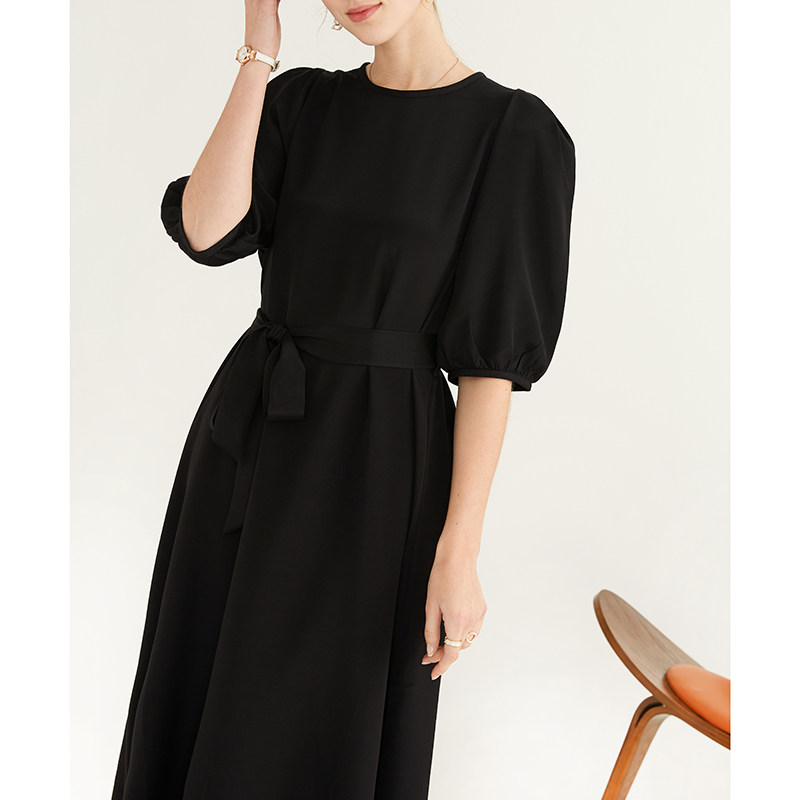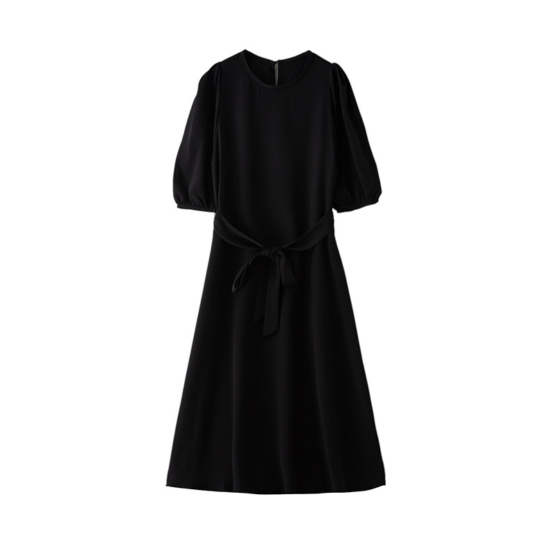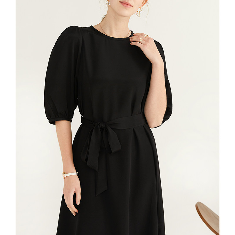 为您提供商品一丝牵 夏 重绉35姆米真丝连衣裙100%桑蚕丝黑色优雅中长裙泡泡袖的详细介绍,