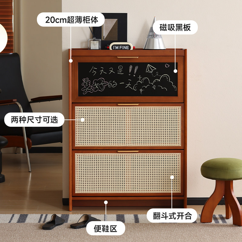 为您提供商品藤编鞋 柜实木家用门口玄关柜小户型翻斗入户超薄鞋 架 小万家具的详细介绍,