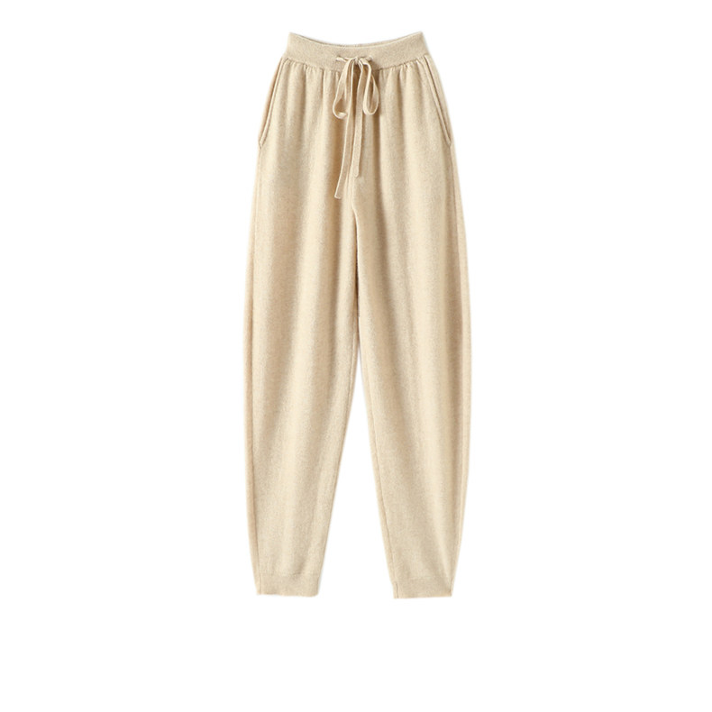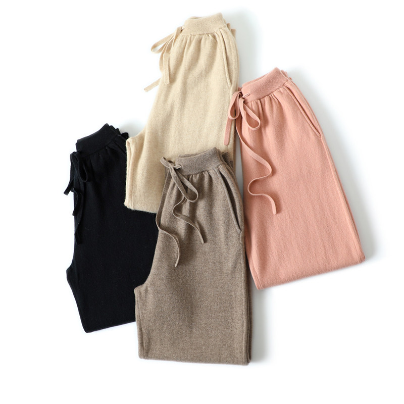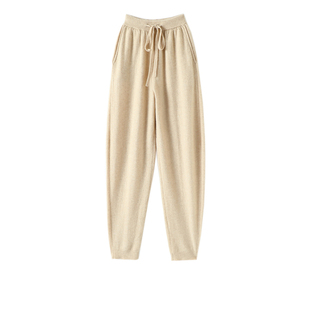 子秋冬款 版 针织休闲裤 子女外穿宽松哈伦裤 型炸裂 100%纯山羊绒裤由