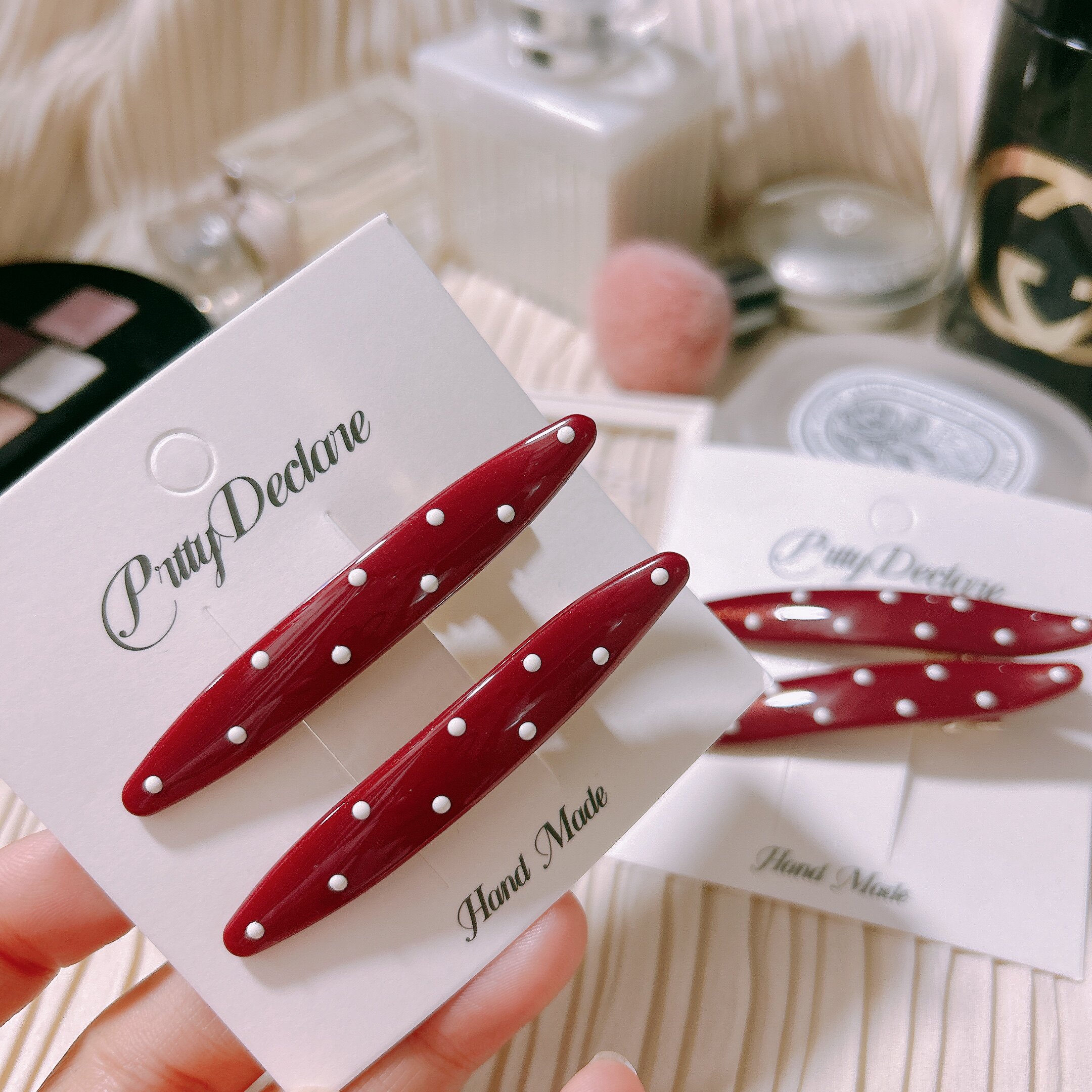 少女心波点碎发夹边夹刘海夹 韩国进口东大门简约樱桃红韩剧同款