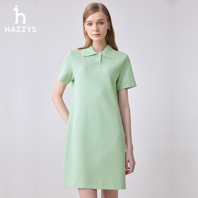 为您提供商品连衣裙女时尚 通勤翻领裙子 多巴胺纯色POLO短袖 Hazzys哈吉斯夏季的详细介绍,