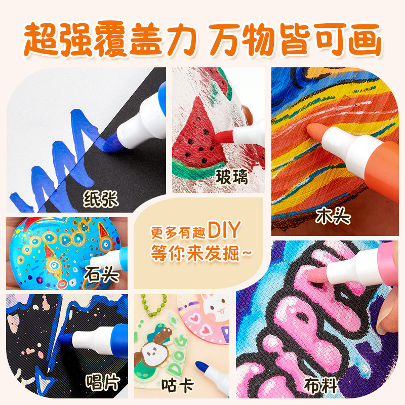 得力丙烯马克笔不透色儿童小学生彩笔丙烯笔幼儿园可叠色可水洗绘画拍立得防水涂鸦DIY水彩笔