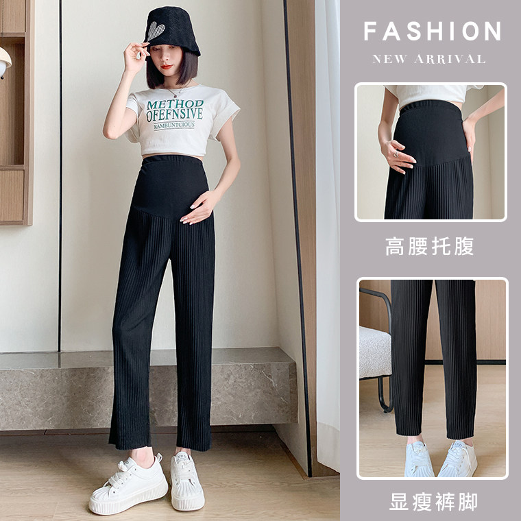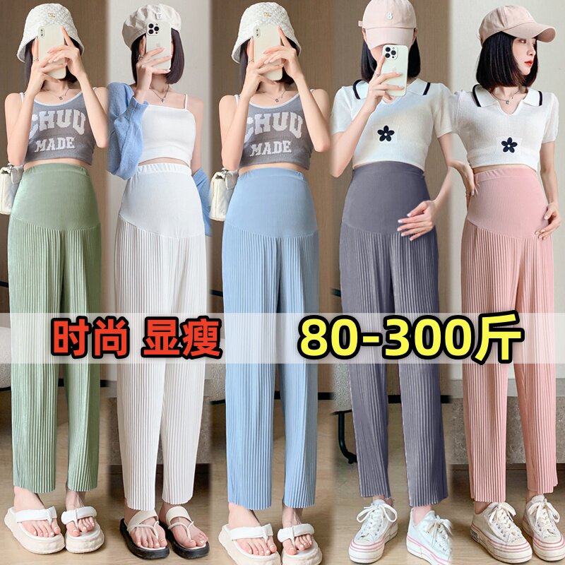 宽松显瘦托腹阔腿裤 超大码 孕妇冰丝裤 春夏季 200斤 潮妈九分萝卜裤
