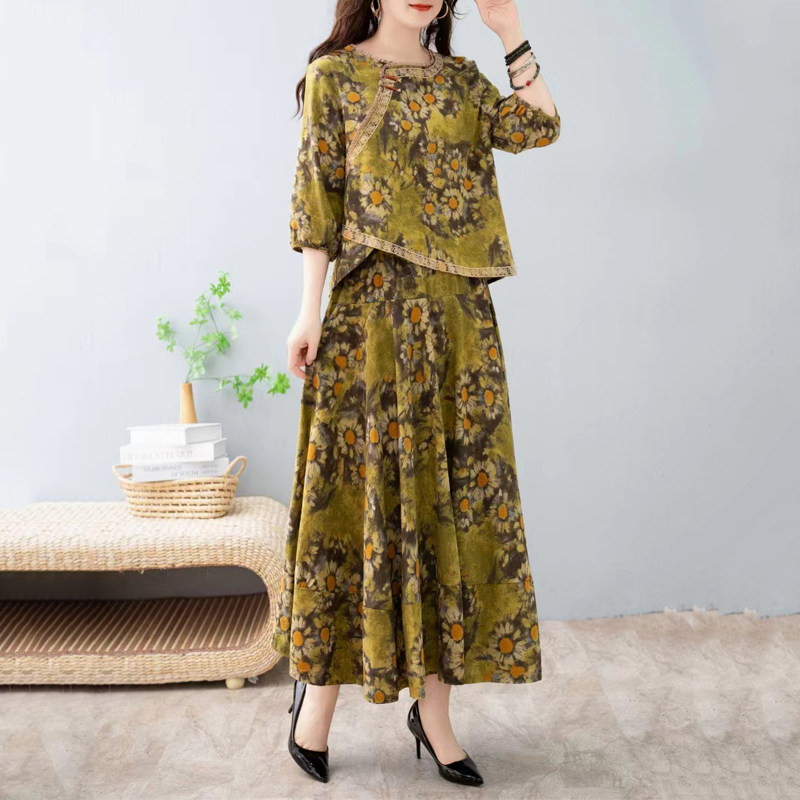 新款 T恤裙子套装 妈妈春秋宽松打底小衫 上衣两件套 中年女春夏中袖