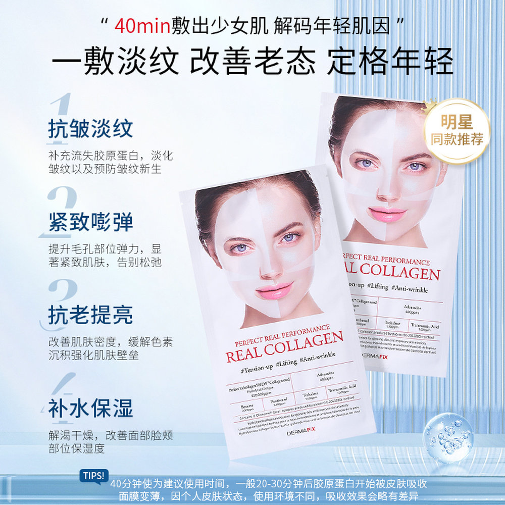 8正品 肌肤23g 韩国直邮DERMAFIX真实展现胶原蛋白积雪草面膜保湿