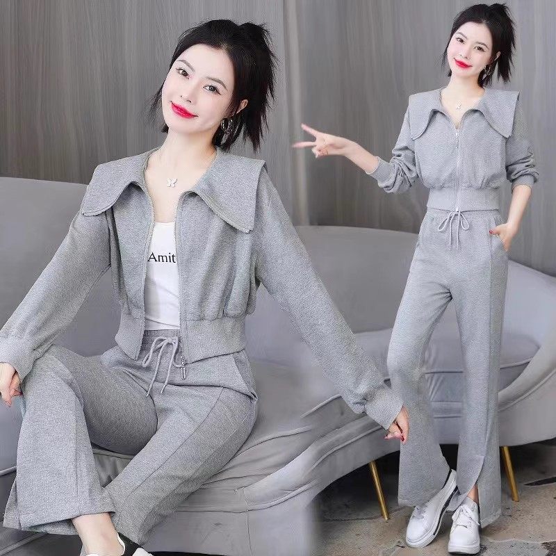 女运动休闲通勤慵懒时尚 2026春款 套装 两件套长袖 百搭阔腿裤