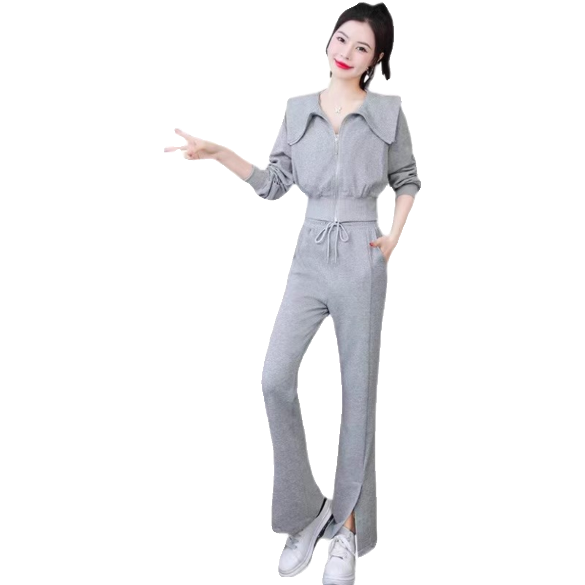 休闲运动时尚 长袖 短款 外套卫衣高腰阔腿喇叭裤 女秋冬 洋气两件套装由