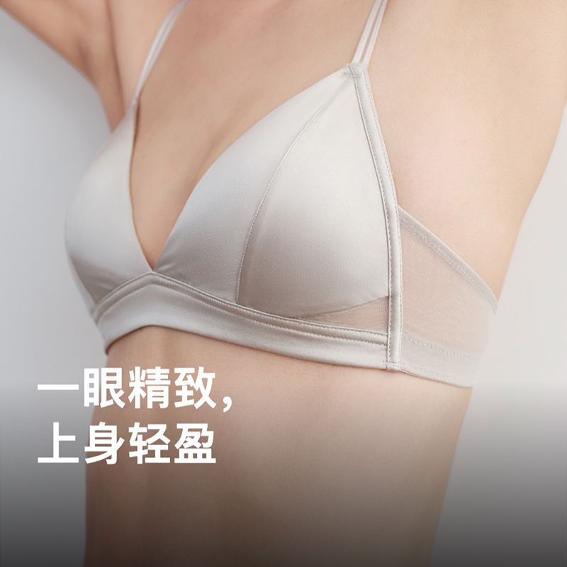 NW261WU1122 内外真丝拼接三角杯文胸桑蚕丝网纱透气聚拢内衣新品