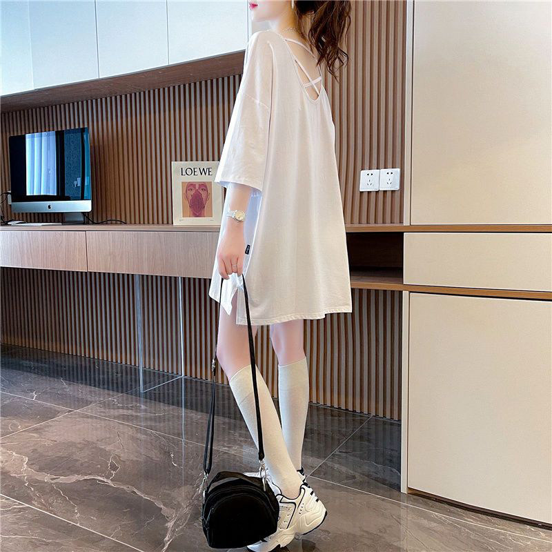 遮肚露背百搭体恤上衣夏季 新款 胖MM300斤t恤女短袖 宽松大码 潮 女装